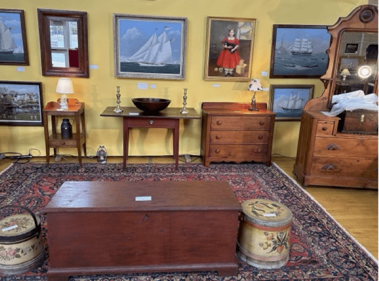 This year the show will bring together 45 dealers from Maine, New Hampshire, Vermont, Massachusetts, Rhode Island, Connecticut, New York and Maryland, arranged in booths and modified room settings, for the Hingham Show’s annual patrons and show-goers. There will again be several dealers who specialize in American Furniture of the 18th, 19th, and early 20th centuries. There will also be great displays of antique and estate jewelry, antique china, porcelains, textiles, paintings, prints, silver, quilts, early pattern & other glass, Americana, decoys, Orientalia, ephemera, decorative accessories, collectibles, and more.