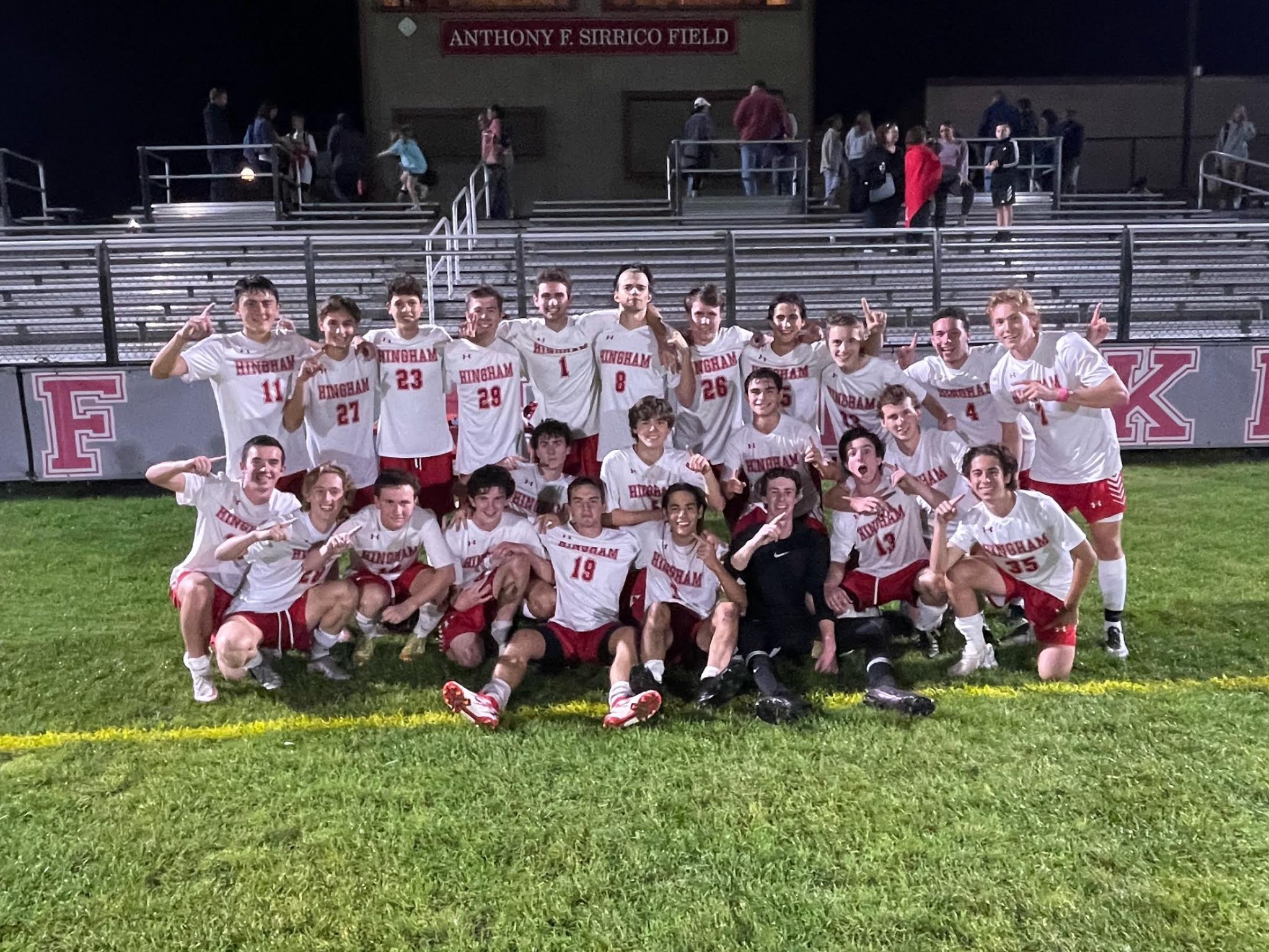 Fresh off a three-win week, which concluded with a 1-0 homecoming victory over Marshfield, the Hingham HS boys soccer team hit the road to take on perennial league powerhouse Silver Lake on Tuesday evening under the lights in Kingston. The Harbormen emerged, as they have in each game thus far in what has been a sterling season, with a 3-1 win in front of a boisterous crowd. The victory brought their season record to a perfect 12-0 and clinched the Patriot League title with 4 league games still remaining.