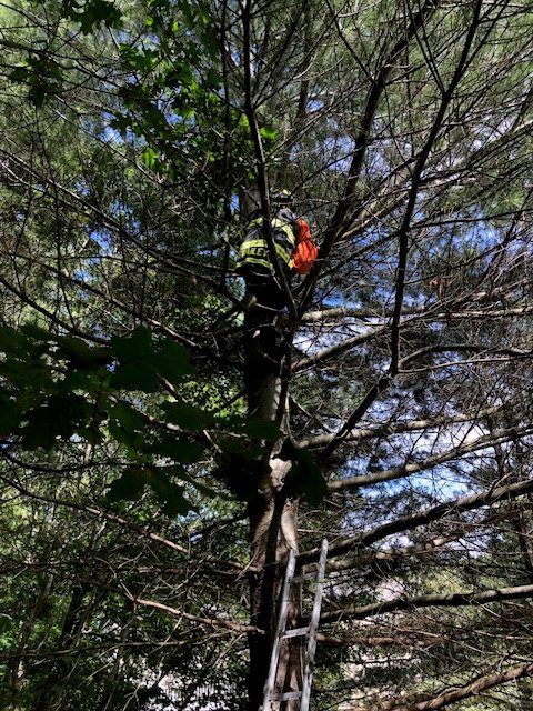 Then in true fire rescue manner the fireman climbed up the tree to the nest.