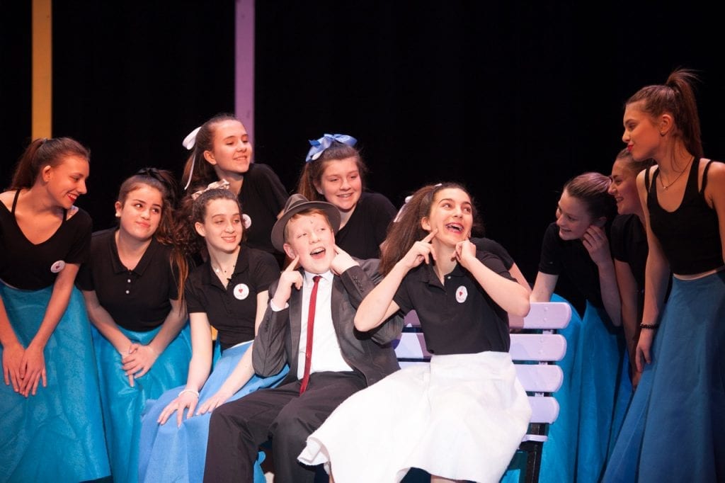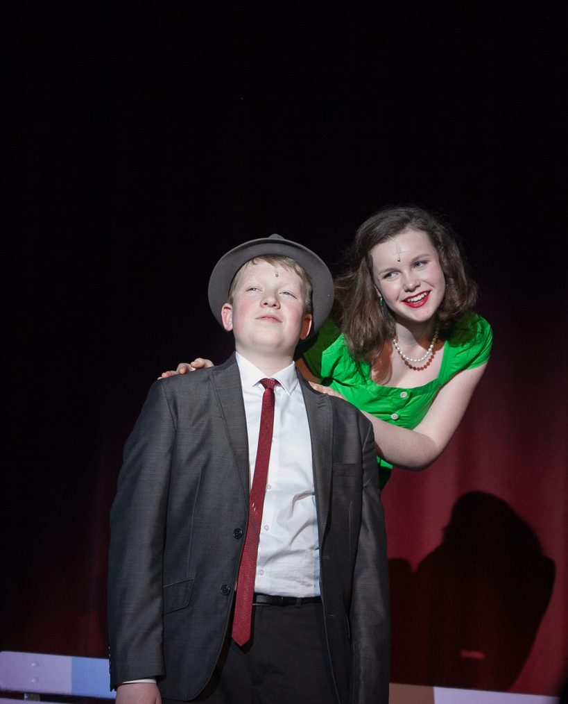 Avery Busby (right), is straight out of Jersey playing Mrs. Mae Peterson. Here she is introducing her son Albert (Charlie Rogan) to his new secretary played by Sophie Morrissey.