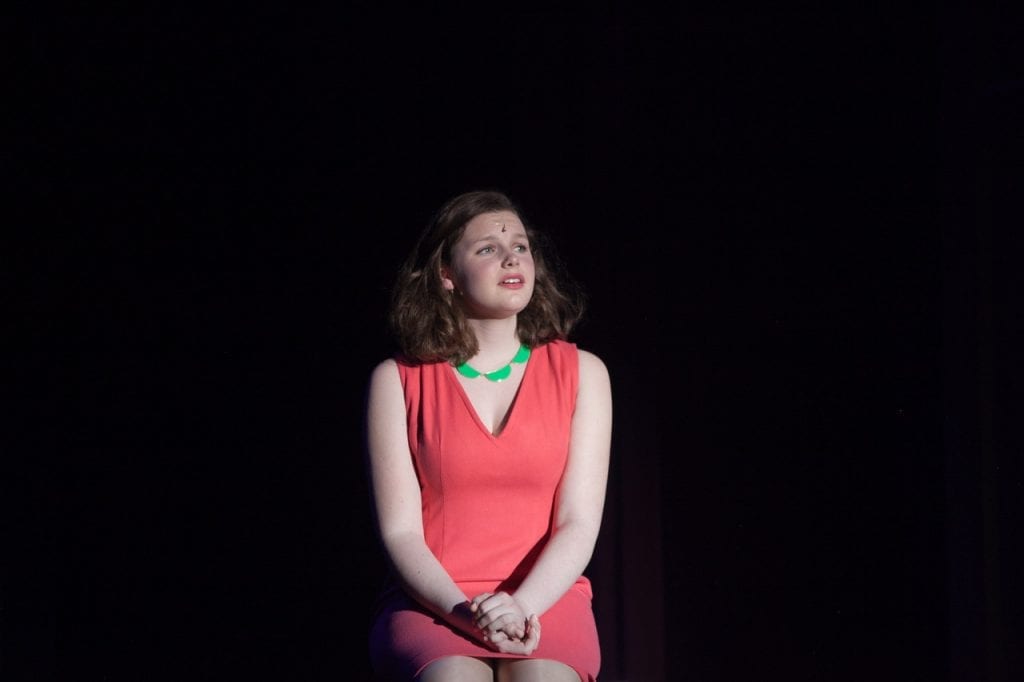 Bridget Foley, playing #1 Fangirl Ursula Merkle, is a little excited to see Conrad Birdie, played by Remy Urbano.