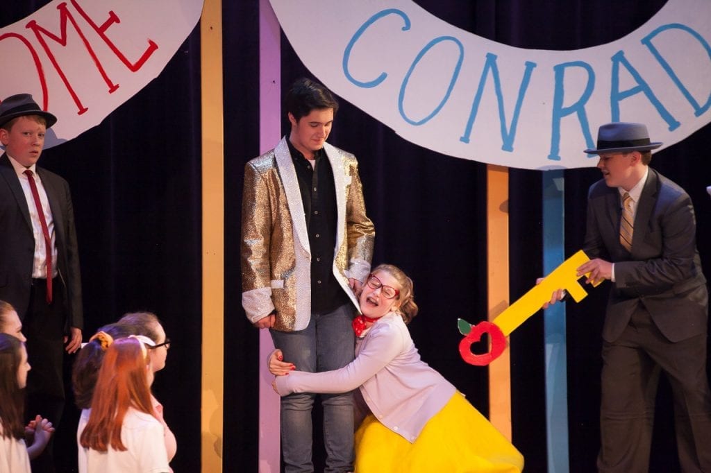 Kim Macafee (Katie Sweeney) was the lucky girl selected to get Conrad Birdie’s (Remi Urbano) one last kiss before heading off to war.