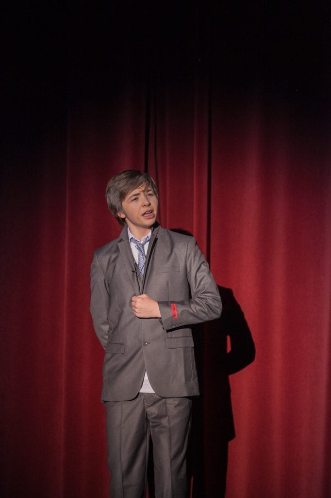 Charlie Rogan as Albert Peterson, along with Katie Harrington and the rest of the “Put on a Happy Face” Ensemble.