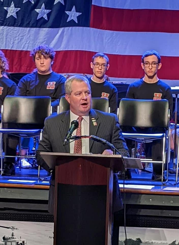 Select Board Chair Joseph Fisher read the following statement recognizing and honoring fellow board member William Ramsey’s military service and recent retirement.