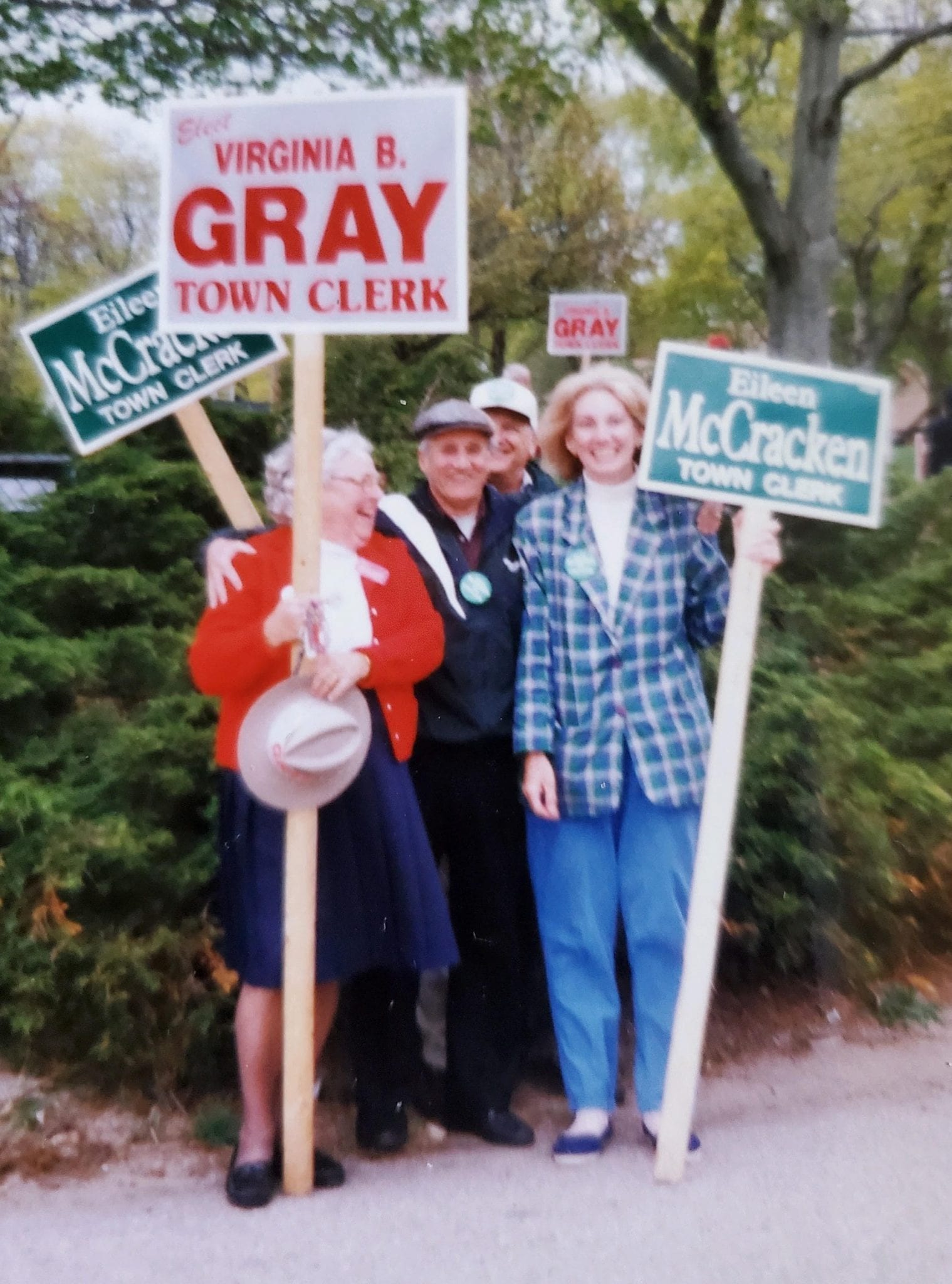 Such wonderful photos from Eileen McCracken’s quite remarkable tenure as Town Clerk! Great memories shared by Eileen too. I will miss seeing her at Town Hall and on duty each Election Day but am so grateful for all she has given to our town. She more than earned the Citizen of the Year honor a few years back. Big shoes to fill. Happy endless-days-off Eileen!!