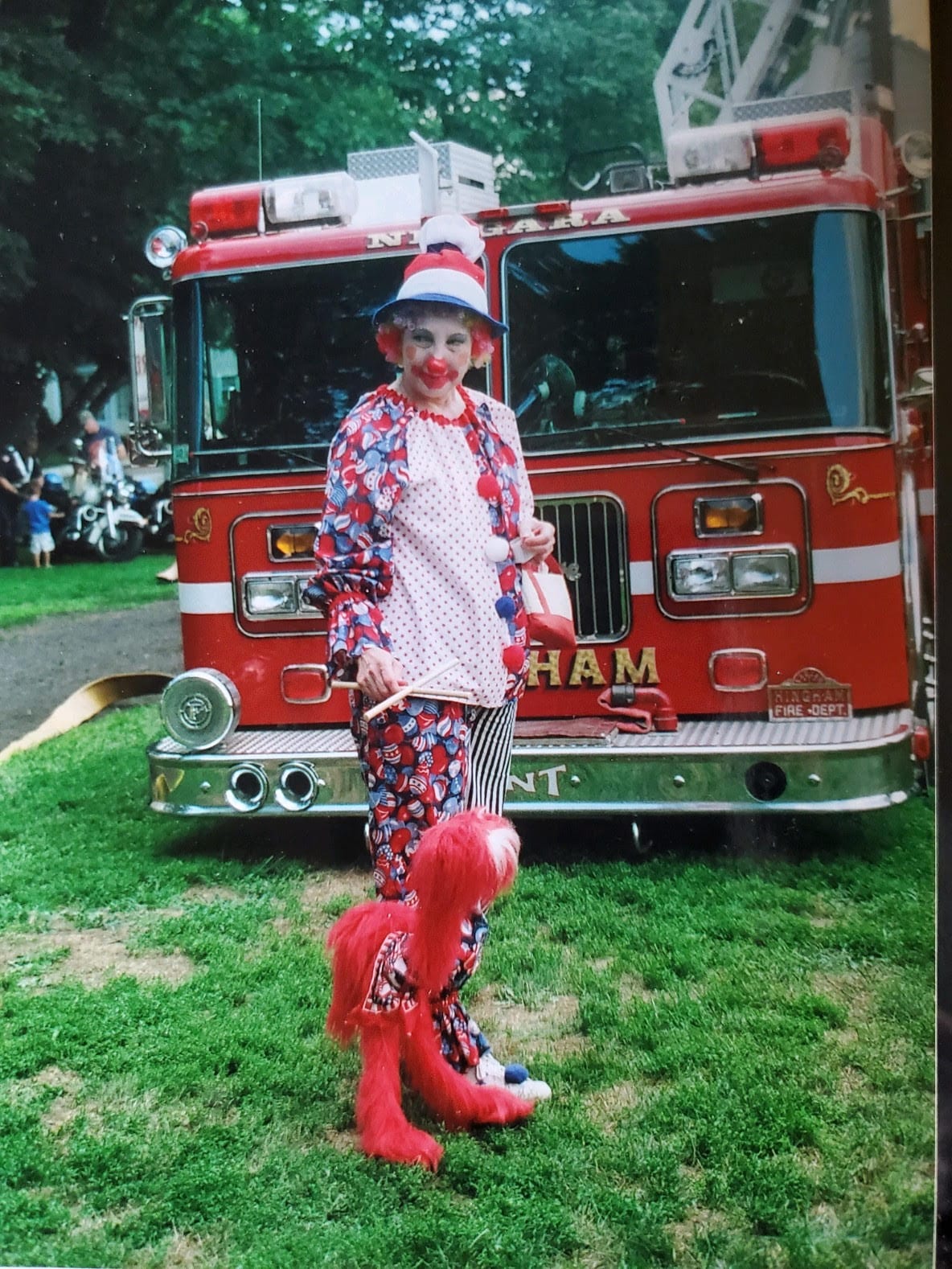 I don’t know if it’s a talent but I make papier-mâché figures. They are a lot of fun to make and it keeps me from falling asleep in the chair at night. Also when the police had the annual Family Fun Day I was a clown for them. I would give out stickers and sometimes bracelets to the children. I always had my buddy “Red” with me too.