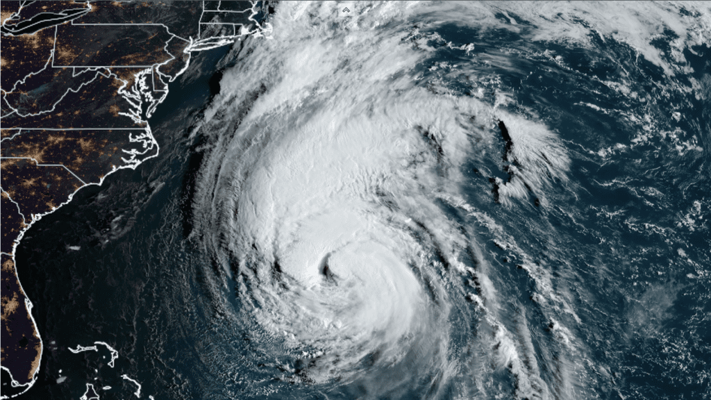 Satellite image showing Hurricane Lee moving north toward New England and Nova Scotia. Image: CIRA/RAMMB