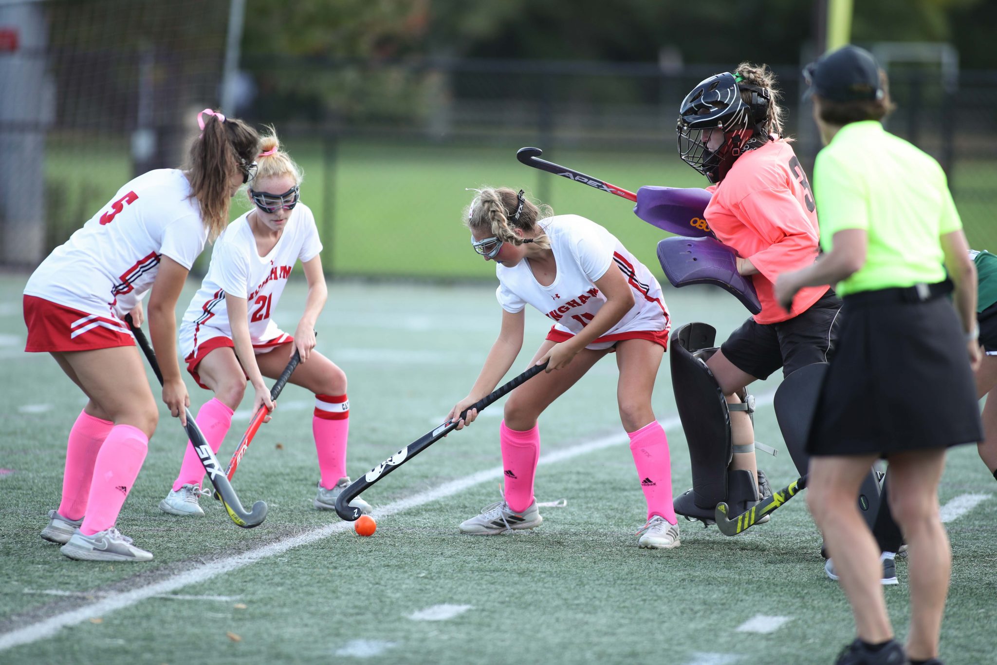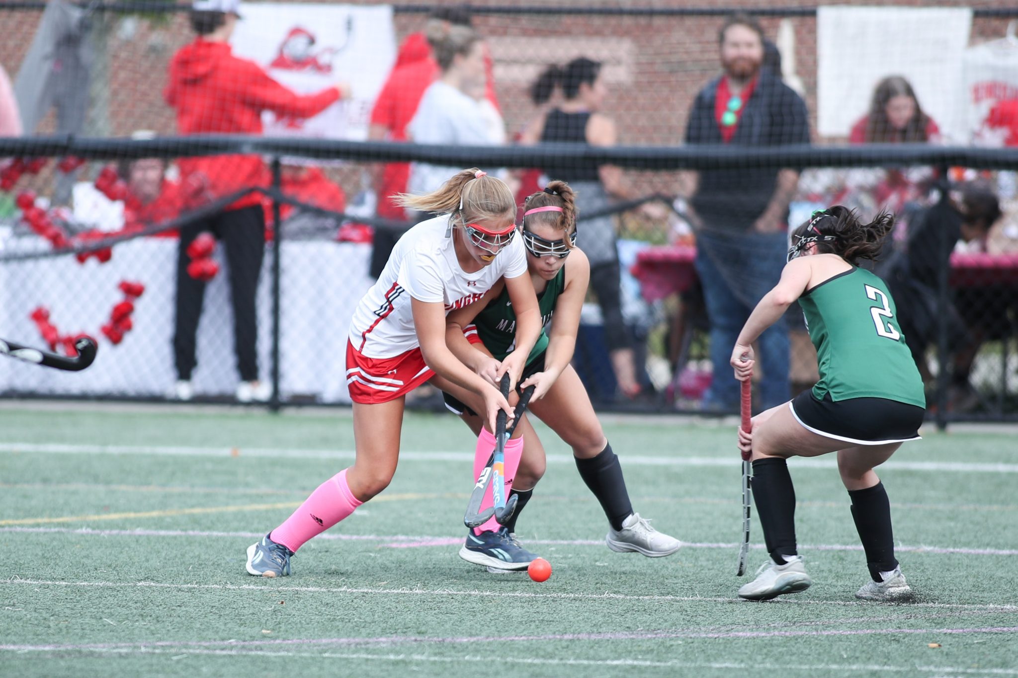 The full slate of Saturday games started at 9am with field hockey taking on Marshfield. The tone was set early for what we could expect throughout the jam-packed day. The game was pretty evenly matched in the first half. Goals by junior Julia Glennon and senior captain Kyle Wilson led to a tie at the end of the first half.