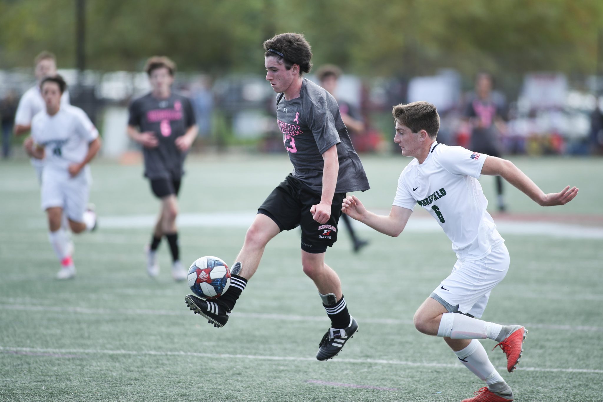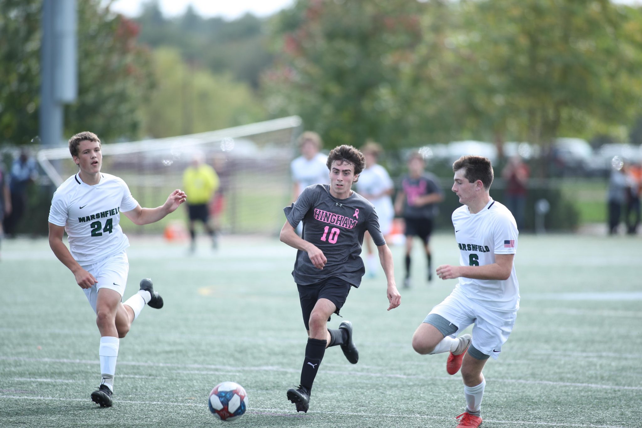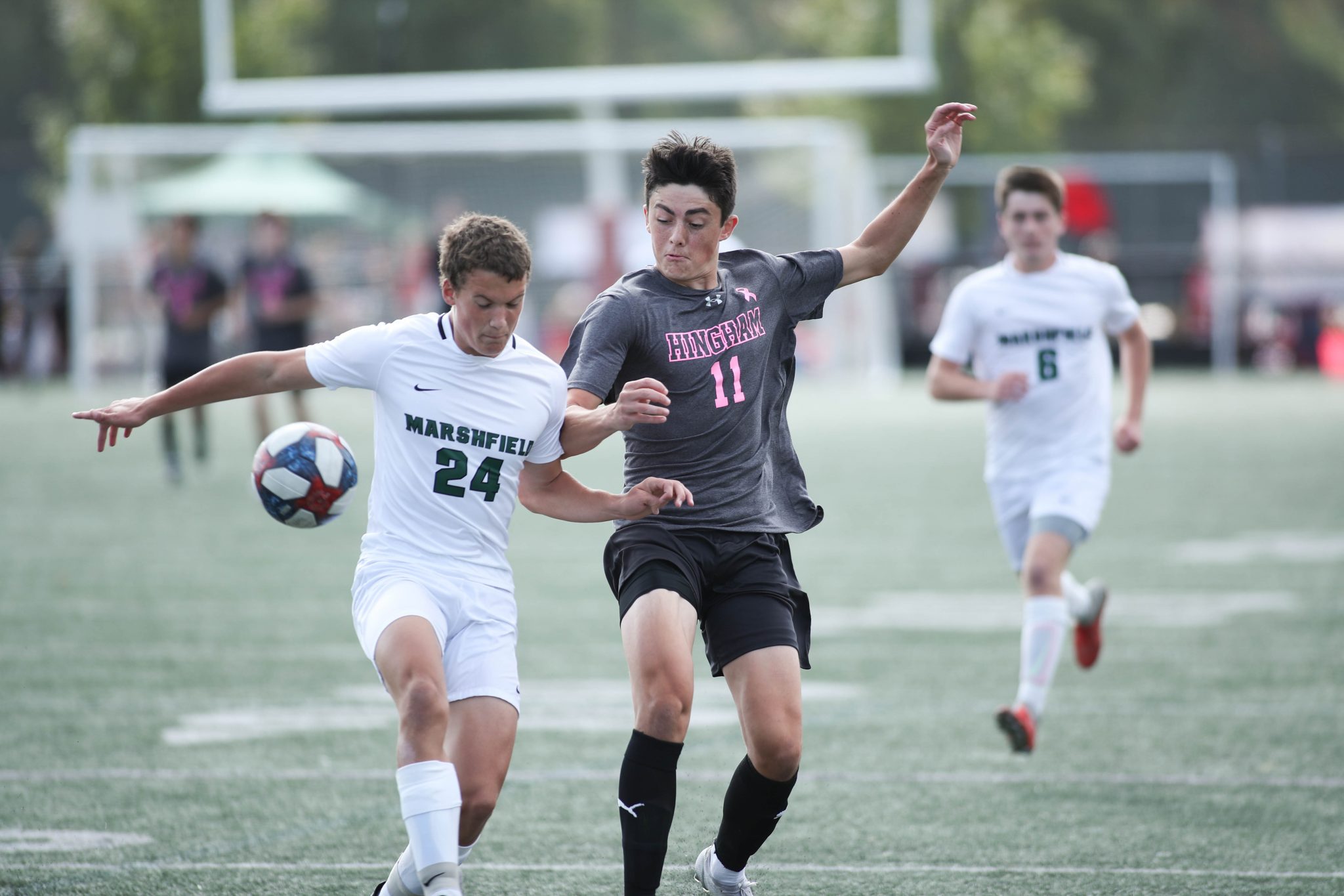 Defense was the name of the game for the Harbormen as they faced Marshfield in the second game of the day. The boys were back on the pitch 18 hours after their game the night before, in which they beat North Quincy 2-0 with goals from juniors Jack Murtagh and Aidan Brazel.