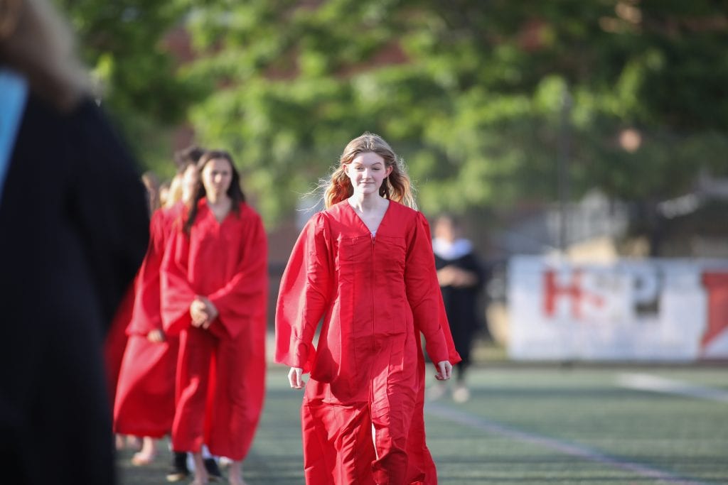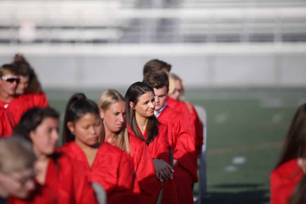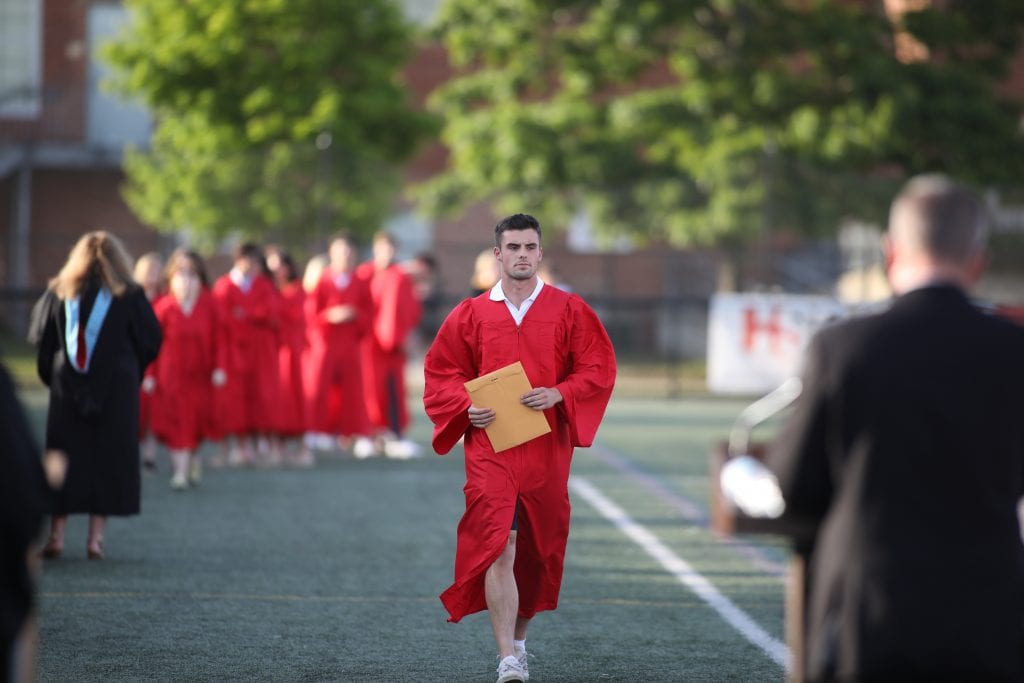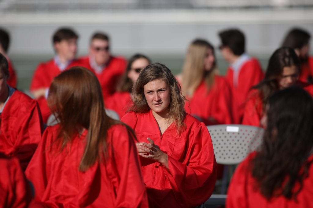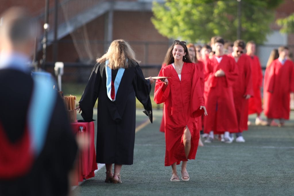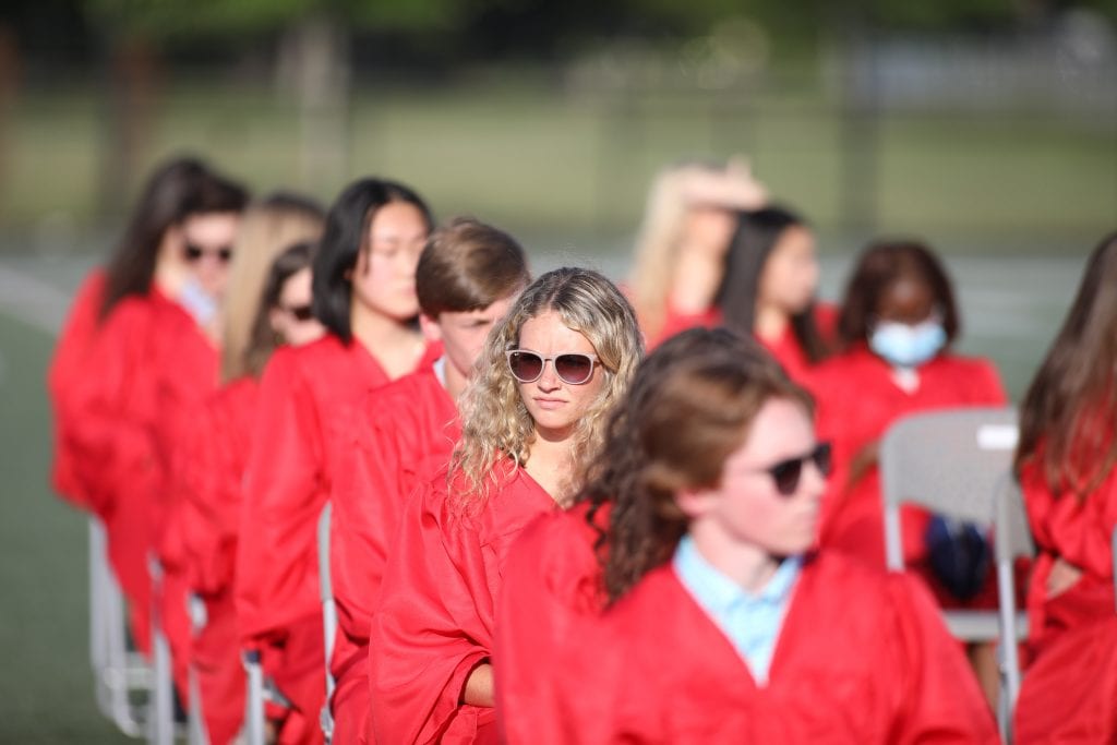 In front of the largest audience the high school has seen in a long time, Principal Rick Swanson and Athletic Director Jim Quatromoni announced senior awards, scholarship recipients, and athletic awards to the Class of 2021. Senior Grace Le Penske also delivered a speech to her classmates about starting the next chapter of their lives with a clean sheet of paper and charting their own course.