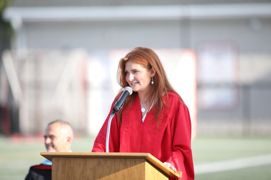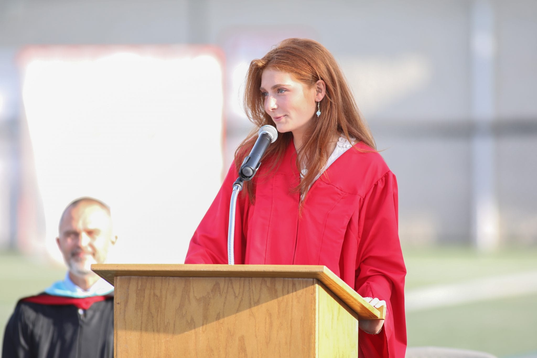 Senior Grace Le Penske gives opening remarks to her fellow classmates of the Class of 2021.