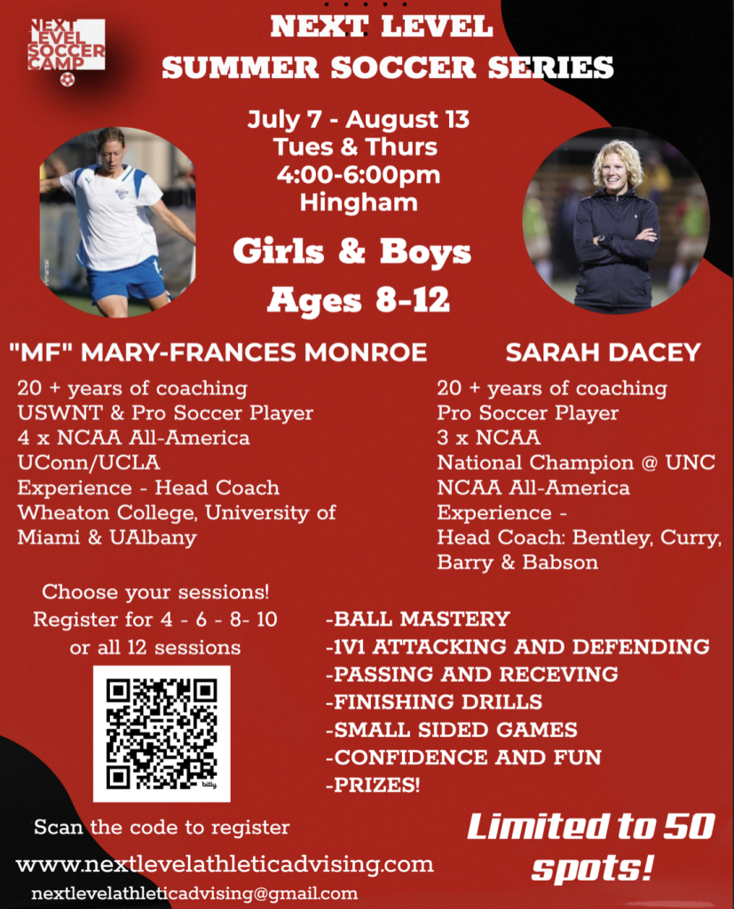 We’re excited to launch the Next Level Summer Soccer Series for boys and girls ages 8-12 in Hingham this July/August.