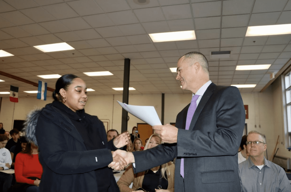 The ceremony took place in front of the award recipients, their families, members of the school committee, and members of school administration.