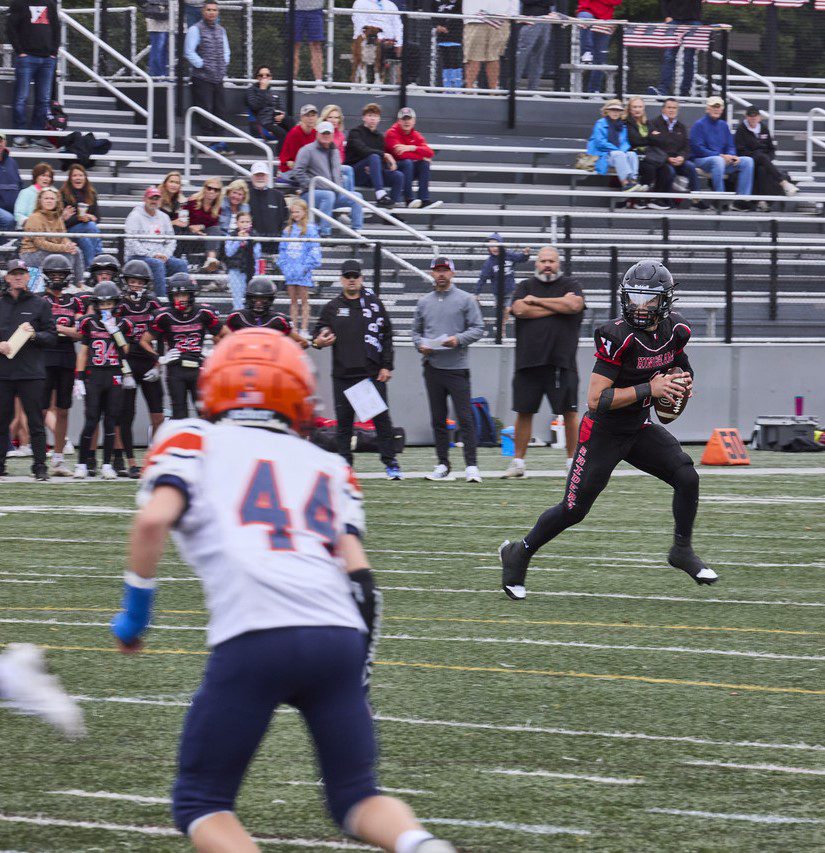 Walpole started the second half on offense when Jack Hart broke up a pass to quickly force a three and out. The powerful offensive line of Will Taylor, Mason Devine, Braden Oun, Ezra Everly and Brayden Huber opened a hole for Johhny Heller to run for a 39 yard TD. On the extra point QB Deininger threw to Mason Aframe who dove over the cone to up the score to 39-11.