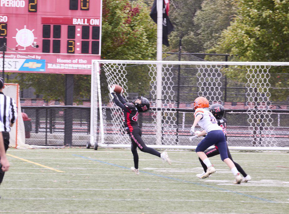Matthew Palermo and Asher Ellis made a tackle for loss and John Peterson just missed and interception as Hingham forced another Walpole punt. QB Garrity threw a 34 yard pass to a leaping Shamus Devine at the 1 yard line. Capping the scoring off Mason Aframe followed his blockers Mickey Syp, Grant Riordan and Wes Govini for the TD to make it 45-19 for the win