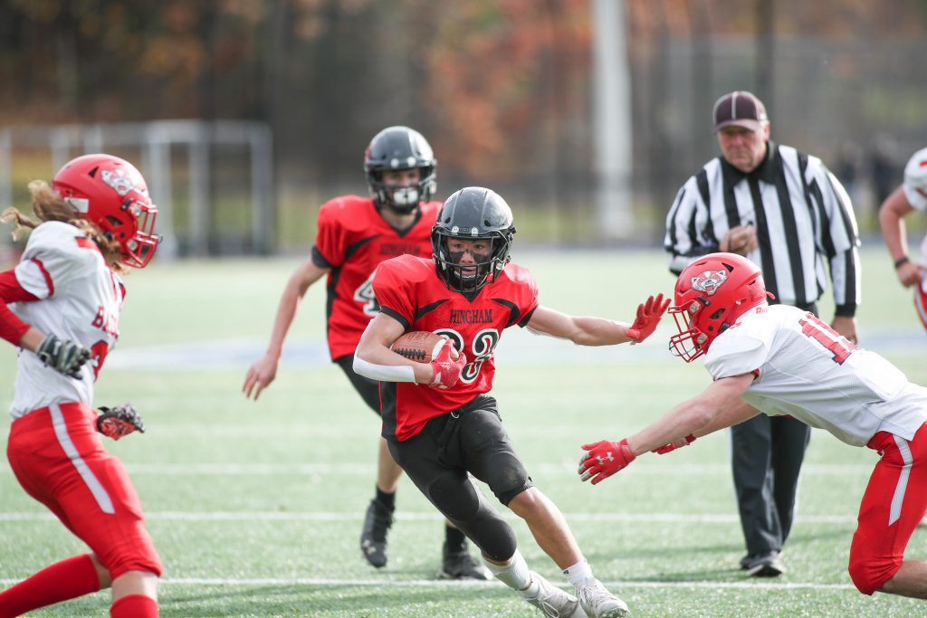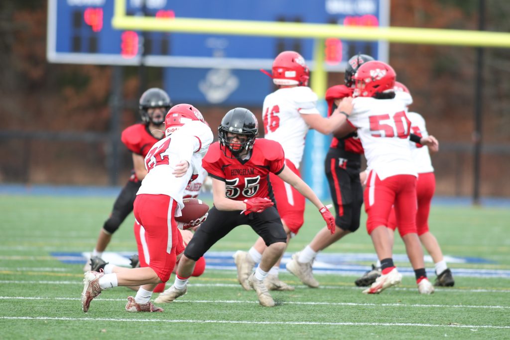 In the 4th quarter, Hingham fed Bridgewater a steady diet of run plays from Jack Daley and Owen Bernard, capped off with a late interception by Teddy Anderson to secure the 35-6 Super Bowl championship win. Congratulations and many thanks to coaches Chris Melendes, John Daley, Ollie Kuehberger, Dave Averett, Tom Hoffman, Jim Nicholas, Kevin Sullivan, Ed Beighley, Chris Pariseault and Jeff Reale.