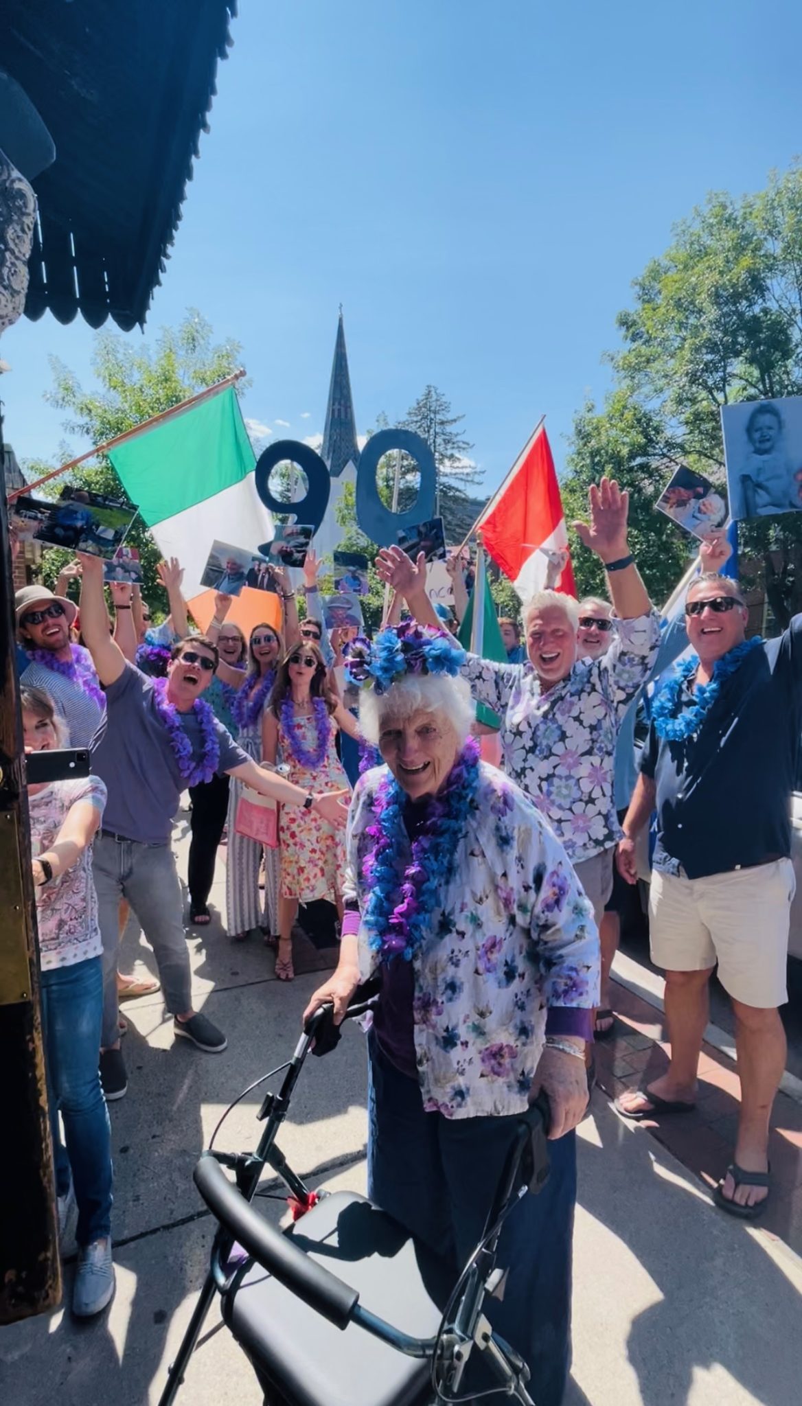 Former longtime Hingham resident Suzanne FitzGerald Giarrusso celebrated her 90th birthday on June 15 in style.