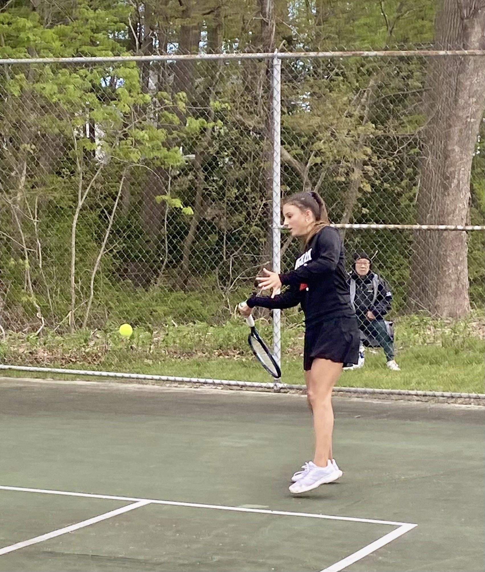 While blown away by the performance of her younger players, Head Coach Linda Partridge praised senior Katelyn Erickson for stepping up and for her perseverance. Usually playing number two singles, she played first in this match and faced some of her toughest competition yet. Though she fell short, she stayed composed and never stopped fighting and that was more than enough to make Coach Partridge proud. These characteristics also shone through in the Harborwomen’s second doubles team, seniors Susie Anderson and Kate Radulski, who took their match to three sets. Coach Partridge commented that though they lost the first set “it didn’t get them down at all and they just kept going and won the next two.” There is a clear resilience present in all the older competitors that is unconditionally appreciated by their coaches and evidently adopted by their younger teammates.