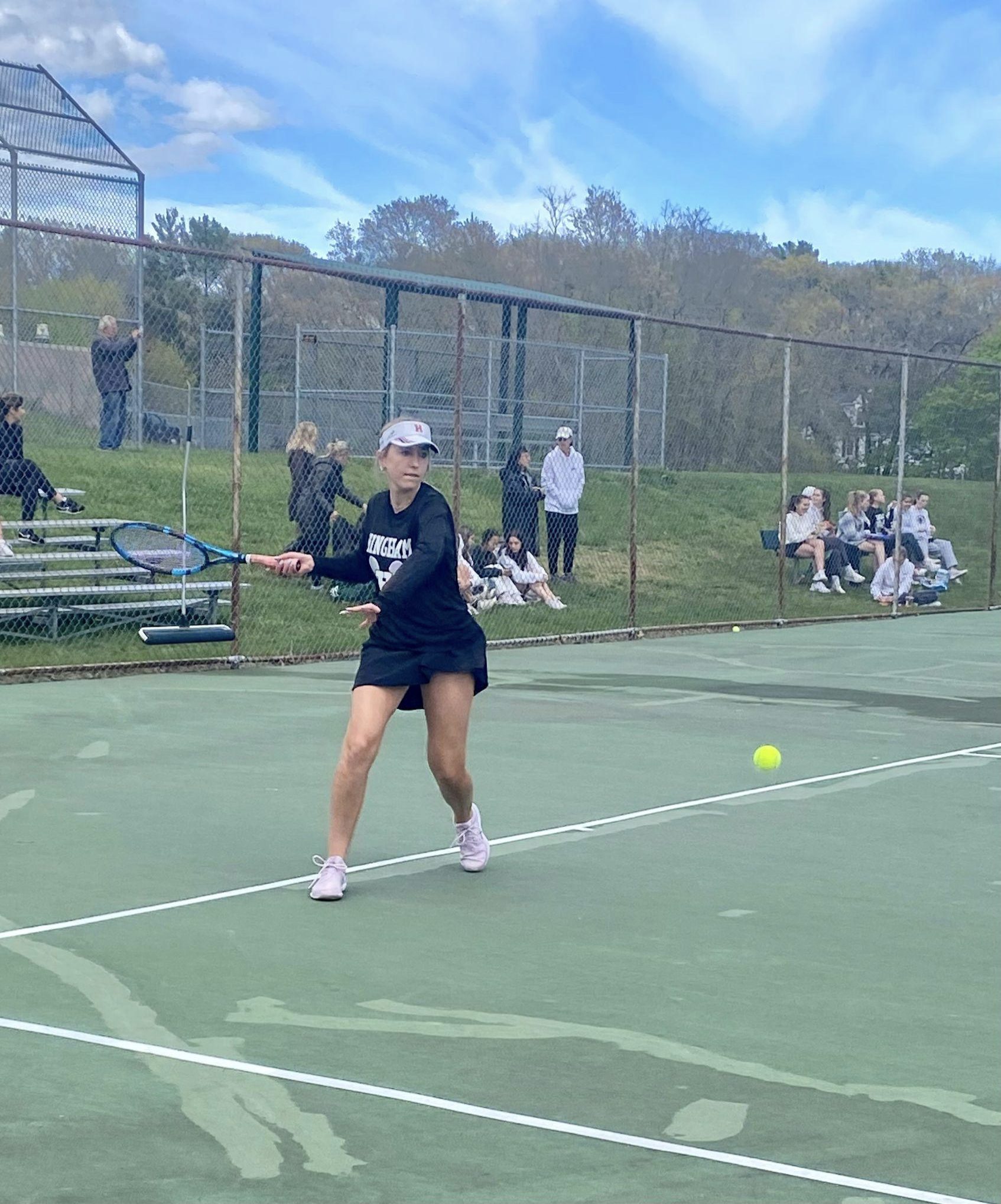 Harborwomen tennis overcame many setbacks and scored a big win over Duxbury on Wednesday. With their number one single out due to an injury, everyone was moved up and many vital players had to push themselves and compete at an even higher level than they have been this entire season. While this pressure might have gotten to some teams, the Harborwomen came out firing on all cylinders and pulled away with the win in almost every match of the day. These girls proved extremely determined and resilient as seasoned veterans remained composed and focused in competition and younger players turned nerves into motivation, proving themselves to be incredibly strong competitors.