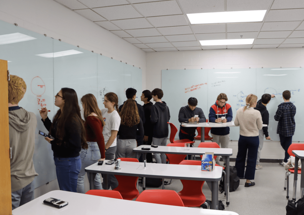 “Bringing the Building Thinking Classroom research into practice, I’ve seen a remarkable shift in classroom engagement, as students work together, communicate, and tackle problems more collaboratively,” said Mrs. Sarah Jacobson. “The addition of whiteboard desks and vertical whiteboards has transformed our physical space, making it easier for students to share ideas visibly and confidently. This shift is fostering a culture of curiosity and shared problem-solving, and I am excited to see its continued impact on teaching and learning mathematics at HHS.”