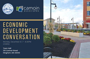 As part of its announced public outreach as it completes an Economic Development Strategic Plan (EDSP), the Town of Hingham will host another public meeting on the Town’s economic growth Monday December 9th at 7:00PM.