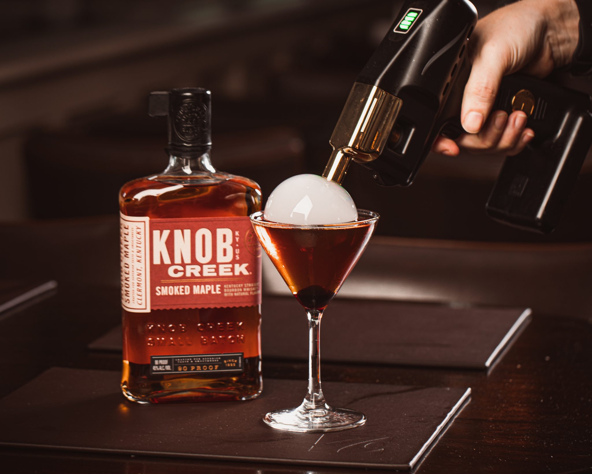 This may be our new favorite cocktail, or even party trick. Created by Donnie, who prides himself as being a bit of a rogue mixologist, this dynamic cocktail features Knob Creek smoked maple whiskey, Antica formula sweet vermouth, and a dash of maple angostura simple. Once the drink is poured into a martini glass, the bartender places a small bit of edible bubble serum in a cup, and then uses a special bubble gun, dipping the bubble gun into the solution, which is then aimed over the drink. When the trigger is pushed, it forms a large bubble over the surface of the drink. When ready, you can pop the bubble with a utensil or finger, and a coffee-flavored smoke disperses throughout. (We made a note to ourselves to ask for a fancy cocktail bubble gun for the holidays…)