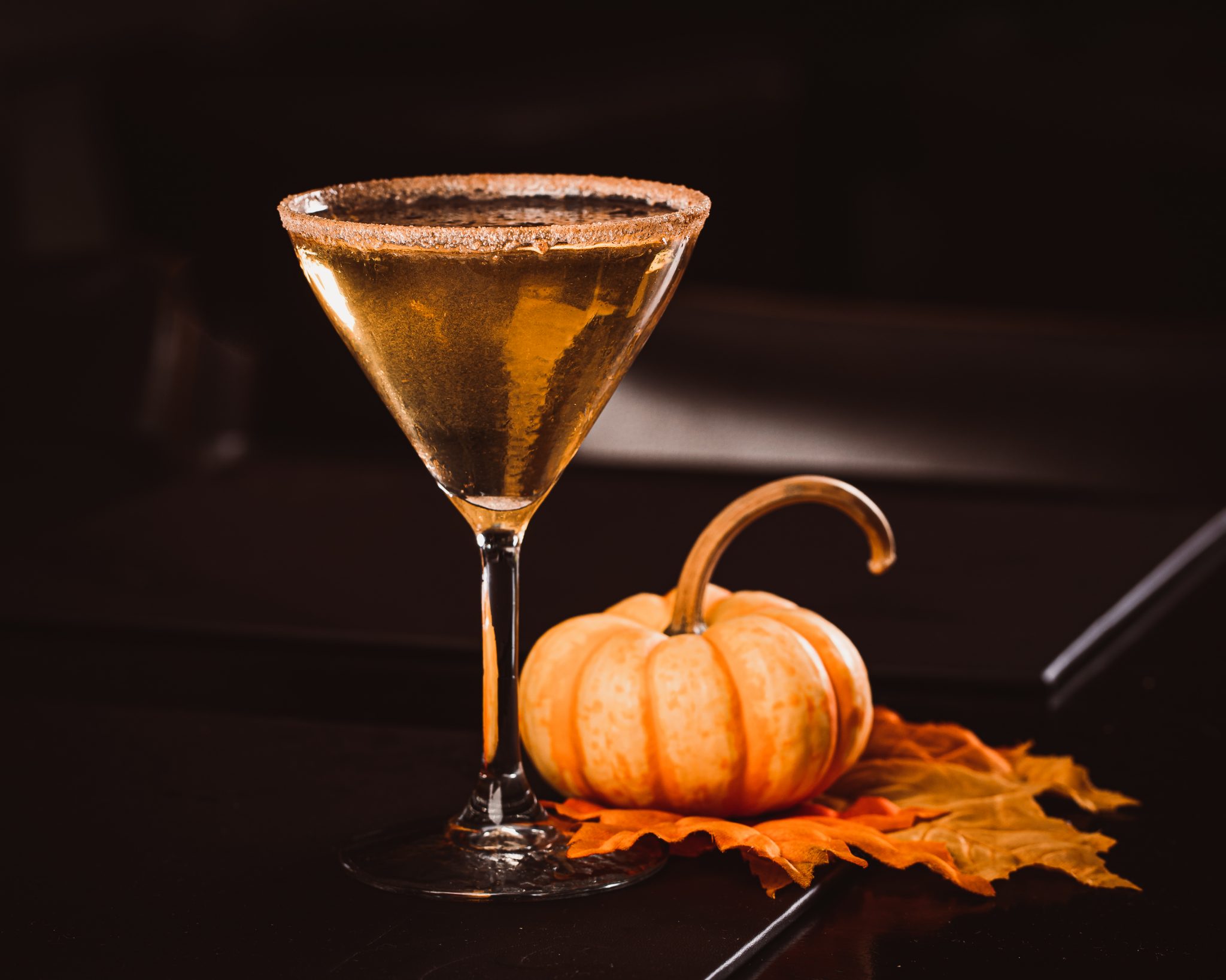 This cocktail screams fall and is composed of Crop pumpkin vodka, Wild Arbor liqueur, vanilla and brown sugar simple syrup, and topped with a cinnamon sugar rim. This cocktail is served in martini glass and is gluten-free.