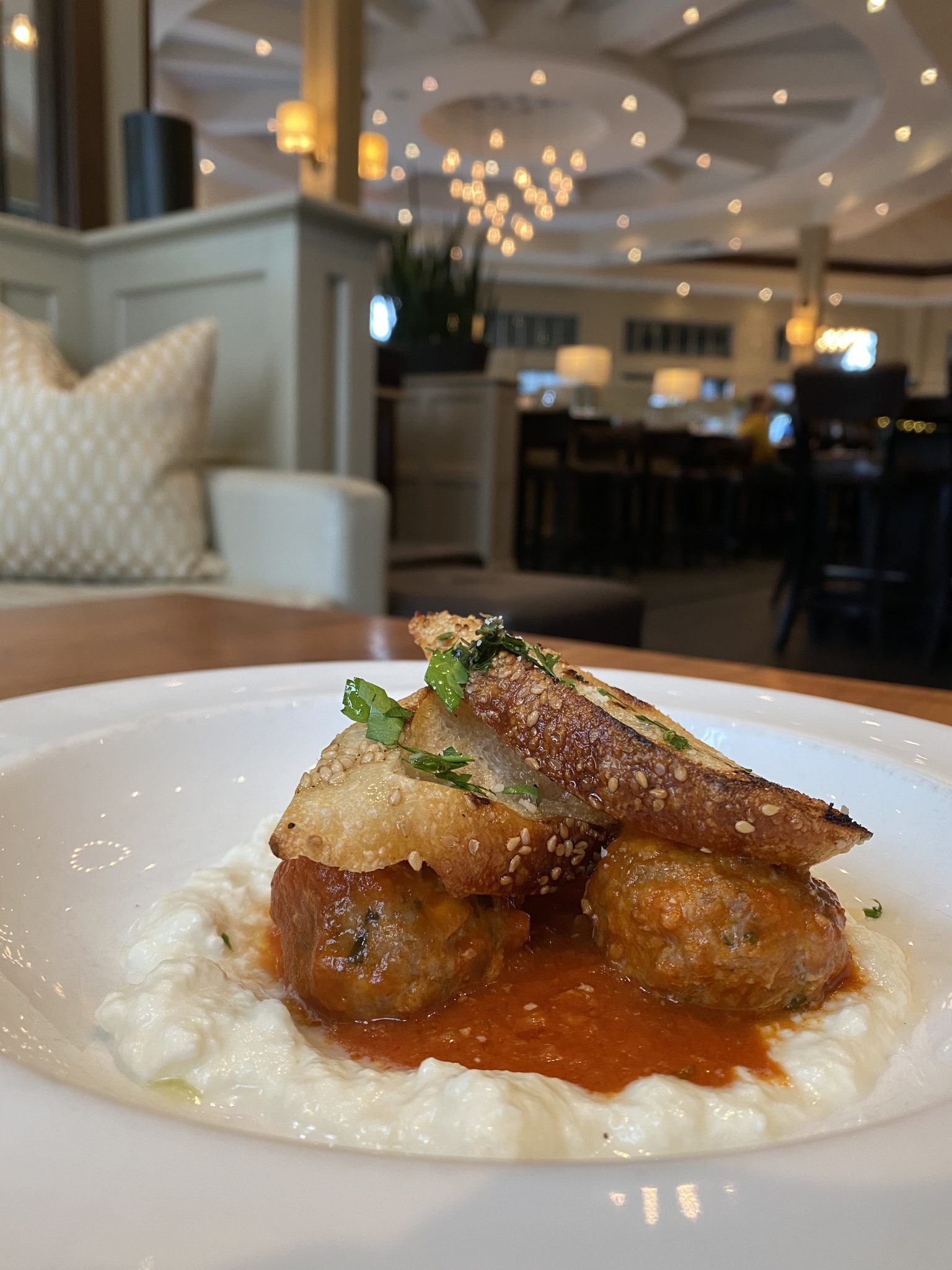 These meatballs are made of fresh ricotta, bread soaked in milk, garlic, onion, basil, parsley, and served over a simple marinara with chili flakes and tomato paste. The dish sits upon a whipped burrata. Chef Sean shared that the restaurant sources some of the cheese from Mozzarella House in Peabody. A side of crostini made out of a sesame ficelle from Iggy’s Bread in Cambridge, which adds a nice savory crunch. The dish is finished with local basil from a microgreen farm in Norwell called Harvest of Joy Microgreens.