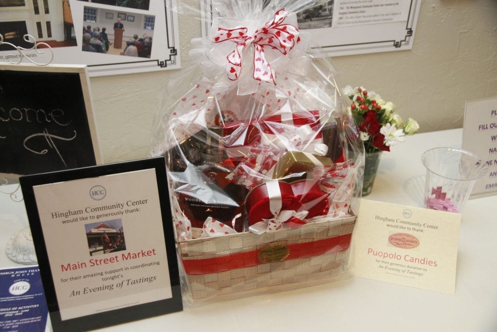 An Evening of Tastings, Wine, Cheese and Chocolate was held Feb. 8 at the Hingham Community Center, with entertainment by Hingham’s own Sean Britt Jazz Trio. A fun time was had by all as they tasted wines from around the globe supplied by Connor Houde of Main Street Market and nibbled on cheese generously donated by local restaurants including Trident, Boat House Bistro, Alma Nove, Square Café, Caffe Tosca, Tosca, Fruit Center, and Trader Joe’s. Sweet tastes of chocolate by Puopolo Candies, Sadie Mae’s and Pour Shun were delectable.  Becky Lynch was the winner of the Puopolo’s gift basket that included a generous Bloomy Rind gift certificate. The event was a fundraiser for the Hingham Community Center, a private non-profit organization that receives no funds from the town but relies on donations and revenue from programs. “The support of the community is vital to the future of the HCC,” said Executive Director Mary Ann Blackmur. For more information about HCC, visit hinghamcommunitycenter.org