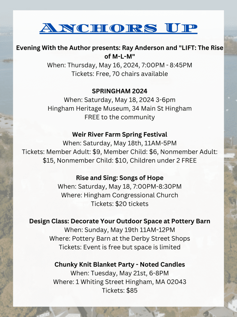 Springham includes LIVE MUSIC from local performers – Take Out and Mr. Child, family activities, draft beer, and so much more! Local retail merchants will also have special Springham promotions throughout Historic Downtown Hingham.
