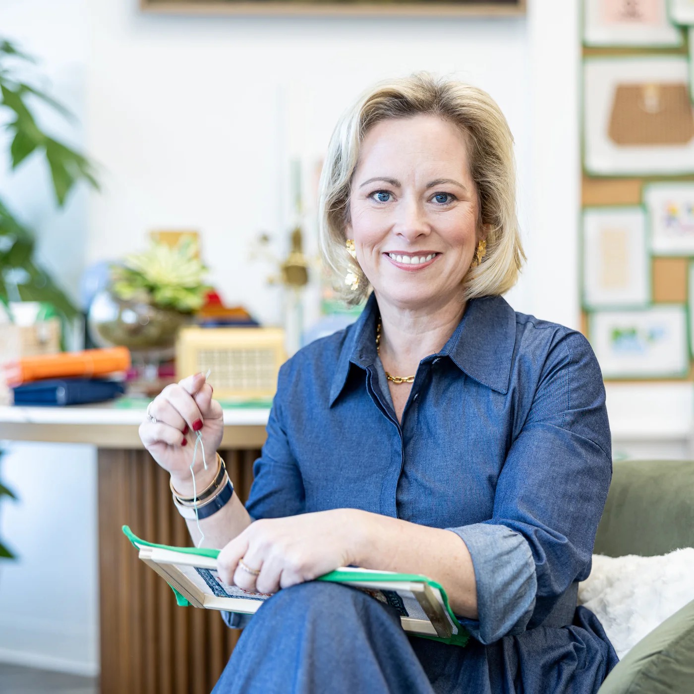 If you need more reasons to get started, Shana shares anecdotal stories from shop patrons. “One noticed on her Oura ring that her heart rate and blood pressure dropped every time she would sit to needlepoint. Another checked her screen time usage on her phone, and it dropped 70% when she started stitching.” Sounds like a win-win!