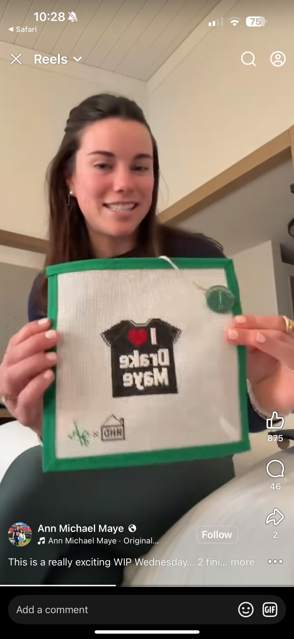 Later, another Patriots wife, Jayda Hawkins, posted a video of Ann Michael stitching the canvas on the plane to the Superbowl, and within the week Ann Michael again showed her half-finished project saying, “It’s perfect for the Superbowl; I’m obsessed. I want to try and finish it this week if I have any down time,” she said. The orders continued to pour in from around the country.