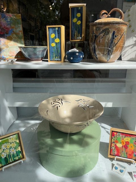 Artisans in the Square is pleased to feature a tribute to Janine Senatore. Janine was a former member at Artisans, a lifelong creator, a gifted artist, a dedicated nurse, and a cancer warrior who lost the battle but left the world a better and more beautiful place. Janine sadly passed away in November of 2024 after a recurrence of breast cancer. Artisans in the Square is honored to be the ambassadors of Janine’s remaining pottery work, which is featured in our front windows for the month of June, as well as throughout the store, with a portion of the proceeds being donated to Doctors Without Borders, a charity that was close to Janine’s heart.