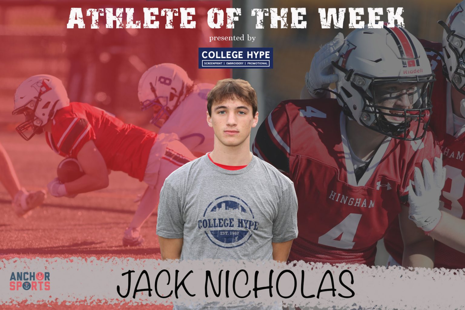 With the final fall Athlete of the Week presented by College Hype, senior football player Jack Nicholas certainly closed out the season with a bang. Jack and his fellow Harbormen waited for the last game of the year to put up their best defensive game of the year. Even in the 13-10 loss to the Superbowl bound Scituate Sailors on Thanksgiving, they caused four turnovers and had Scituate back on their heels all game long. Jack led the way with two interceptions in the endzone killing two prime scoring chances for the Sailors.