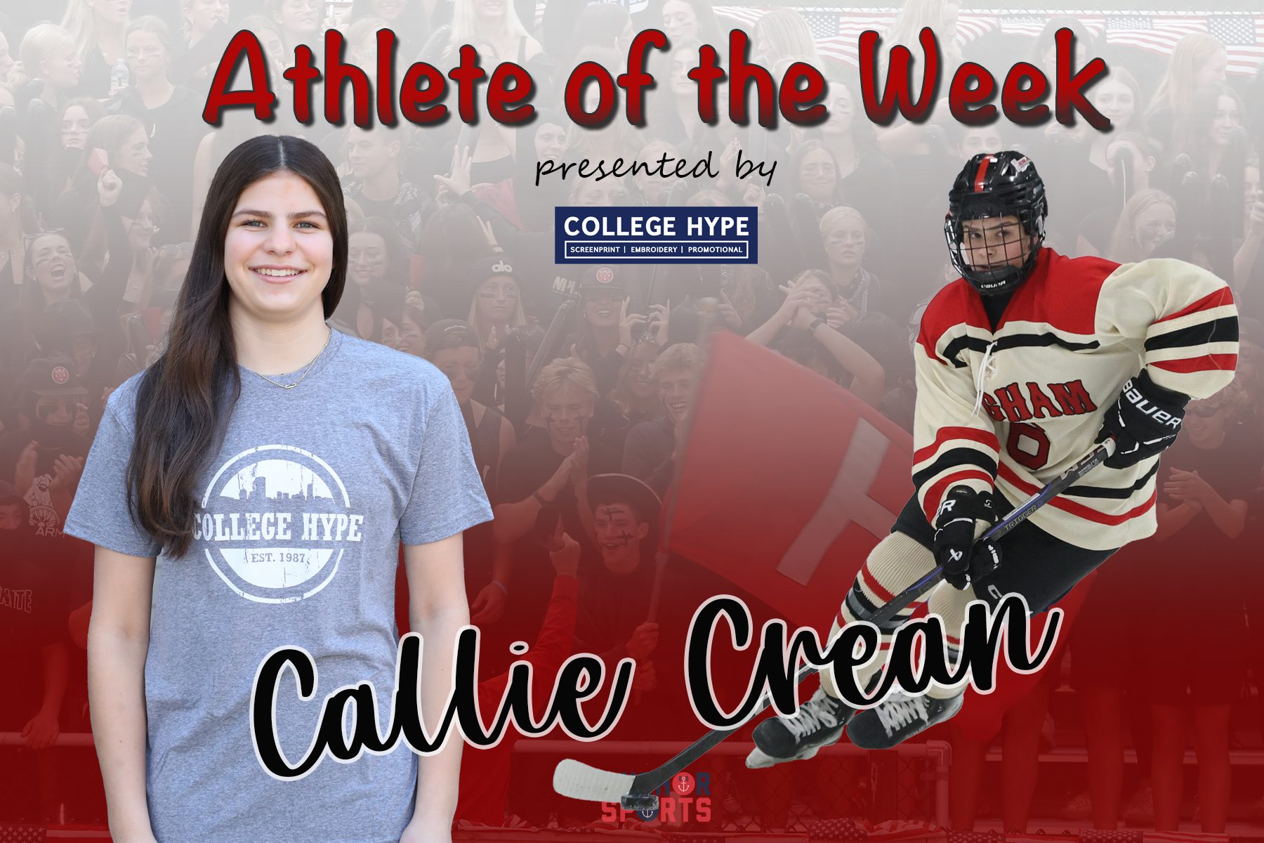 The Hingham Harborwomen is the last team standing for the winter sports season, partly due to the play of Callie Crean last week. Her performance earning her Athlete of the Week presented by College Hype honors this week. The sophomore forward scored the game winning goal with under a minute to play in the quarterfinals vs Belmont on Wednesday night and opened the scoring and setting the one in the Harborwomen’s semi-finals win vs HPNA on Saturday. She has 18G and 14A on the year and has made huge plays at big moments throughout the season.