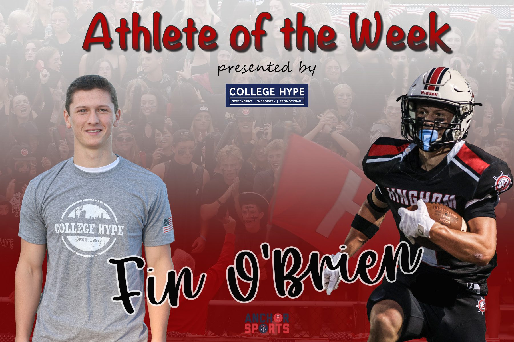 The first one of the year is always a tough one. There are athletes who you’d expect to do well then there’s inevidably a handful of people who surprise you with their perfomance. This year’s first Athlete of the Week presented by College Hype is senior Fin O’Brien. Fin had a tremendous game for the Harbormen on Friday night helping Hingham secure the 42-6 win over Merrimack (NH). After Hingham scored on their opening posession, Merrimack was threatening to tie it up until Fin intercepted the ball deep in Hingham’s end returning it for 31 yards. He had six tackles, 5 passes defended and even a reception for 25 yards.