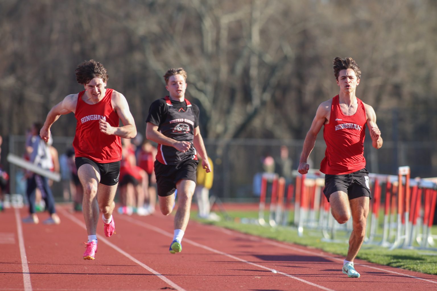 On the boys side, Coach Jewett had a similar outlook both reflecting on the season so far and looking toward further success in their upcoming meet. Jewett stated, “all in all we are really pleased with how the season has gone” and he was excited about the success they found this year. He complimented his captains Matt Kelly and AJ Barret who he believes have “done a great job of leading the kids.” When asked what the keys to their success this season have been he commented, “It’s a combination of a couple of things. First of all they work very hard in practice, they are very focused on what they have to do in order to get better, and they don’t just come to practice and go home without really thinking about it. Number two is we’ve really got a team that’s learned since they were younger how to compete. One of those things in the last couple years that we are really happy about is that our teams never have a really bad day. They come into each meet wanting to do better, wanting to get personal bests, and they work really hard to do that. Three they support one another. We have a philosophy of mutual respect and positive coaching here at Hingham that we have had for over 20 years and the kids know that we are here to help them and that they are here to help themselves and each other.” He believes that positive reinforcement will be crucial in continuing their success in the postseason and through these three main components, the program will continue to be successful and well adapted to any change in make-up.