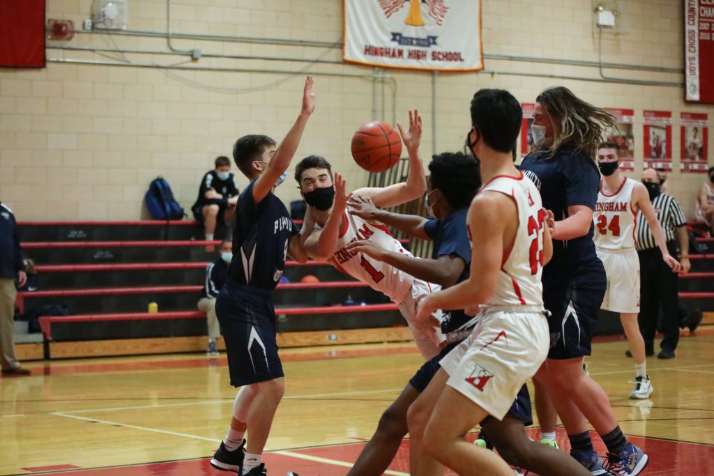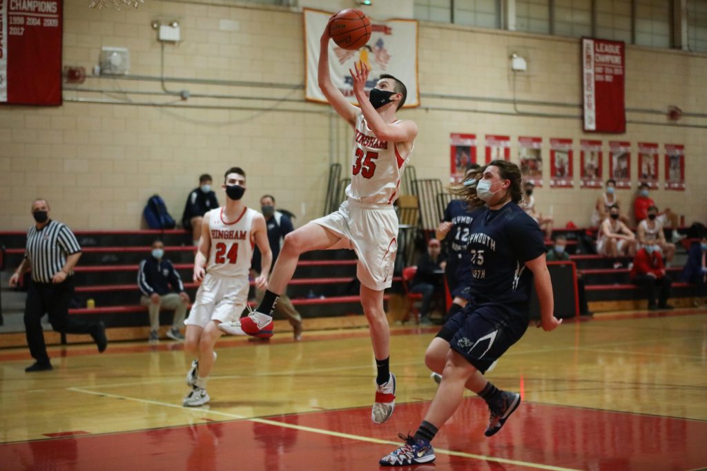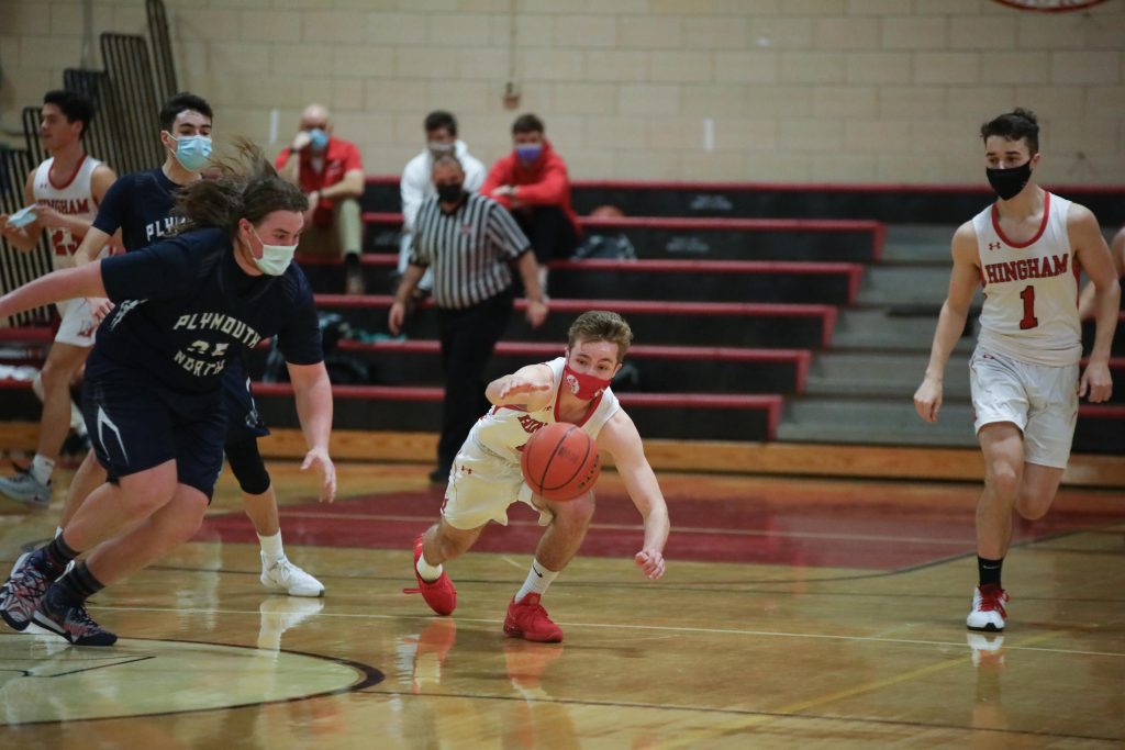 The Harbormen were much more aggressive from the start. Senior captain Steven White hit two 3-pointers in the first quarter, while Jack Hurley, the other senior captain, was chasing down loose balls and looking for the open shooters. Hingham took a 13-7 lead into the second quarter. Junior Curtis Murphy continued the good shooting in the second making two 3-pointers, which extended the Harbormen's lead to 25-17 at halftime.