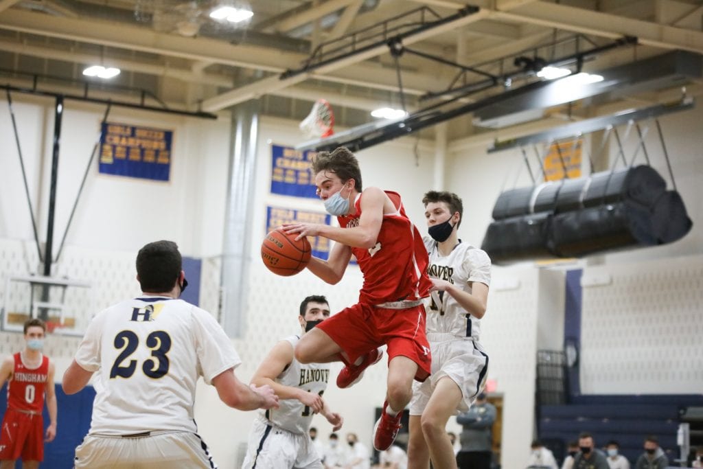 Hingham jumped out to an early 9-2 lead to open the game.  The Hawks settled in a bit and cut it to 2 points at 11-9.  That was closest Hanover got the Harbormen for the rest of the game.  Hingham came right back on two quick layups from senior captain Jack Hurley and one from junior Nick Johannes and built their lead right back up.  They end the first quarter with a 20-11 lead.