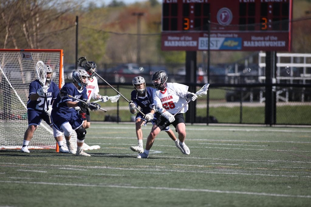 Hingham went 8-2 on face-offs in the first quarter, aiding their dominant offensive performance. They carried this 80% win rate into the second half, also going 4 for 1. Plymouth North looked as though they would rally at the beginning of the second after a solid offensive possession, but Hingham continued to run away with the game. After setting up the passing formation, Hoffman drove and scored four minutes into the quarter.