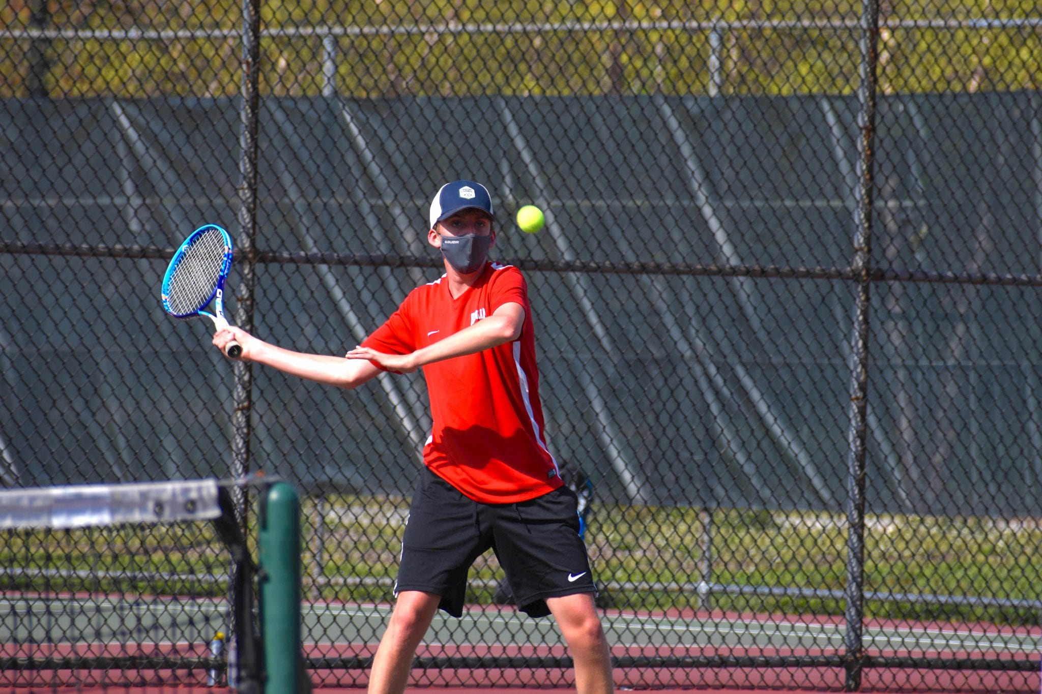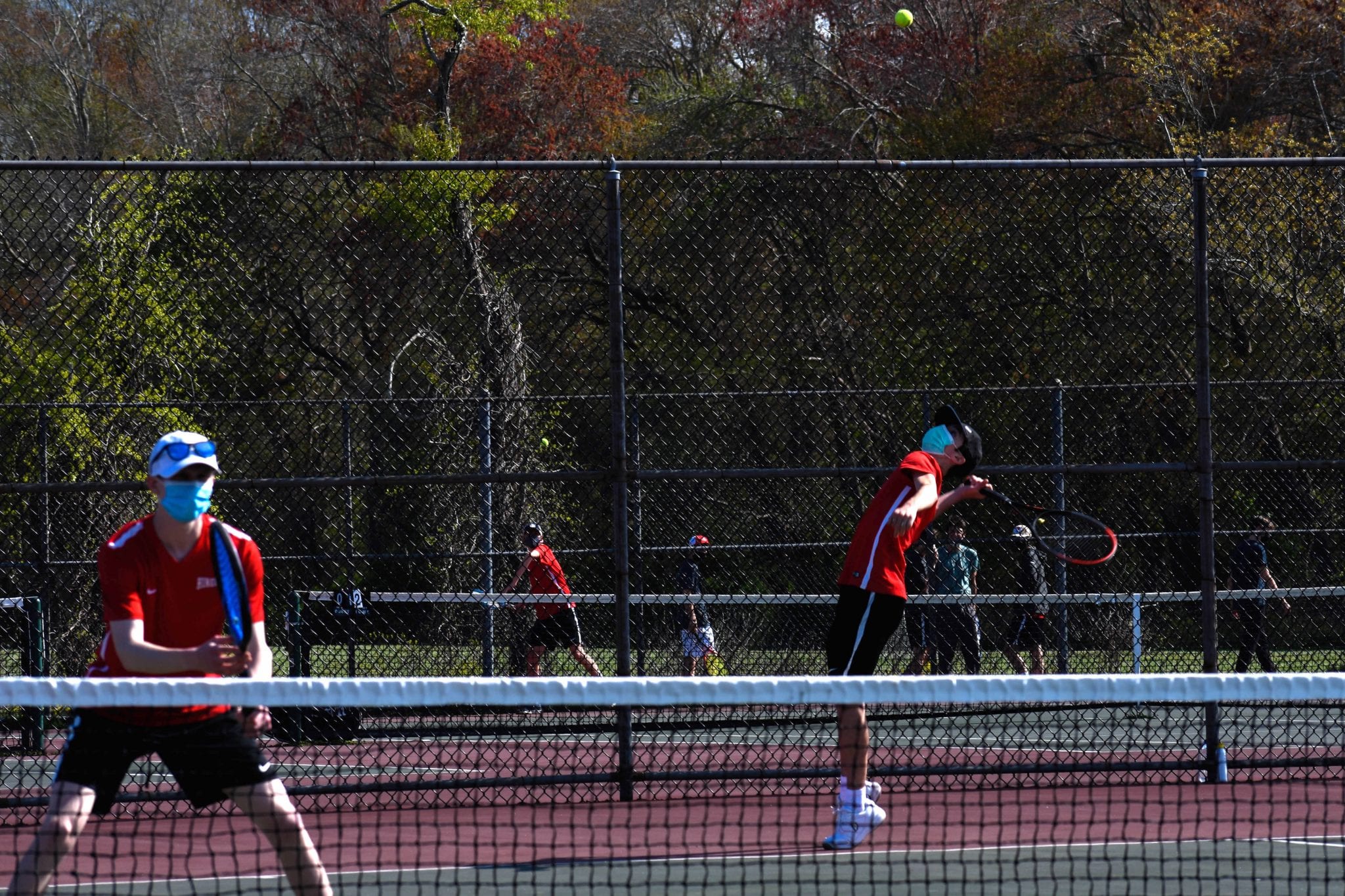 On a busy Hingham High campus, the boys' tennis team squared off against Whitman Hanson. Hingham decided to play their third lineup against the visiting team and still managed to win all five matches.