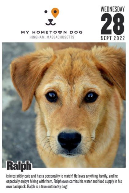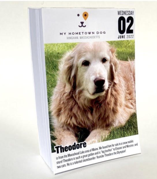 My Hometown Dog is a Hingham-based business celebrating the town’s approximately 2,700 licensed dogs in a 365 day-by-day calendar featuring photos of local pups; with each passing day, turn the page to reveal a different Hingham hound—and there’s a good change you may recognize some of the models, as residents are encouraged to enter their furry four-legged family members for consideration to be chosen for the calendar!