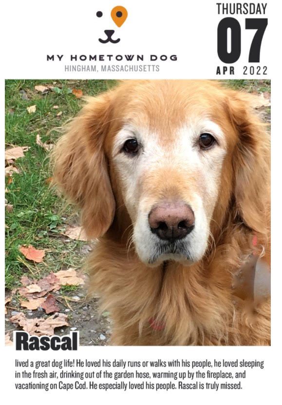 And so, as she says, “Voila! Combine the love of town and all the dogs we know, and [the] dogs we’ll get to know, into a page-by-page desk calendar of Hingham dogs!”