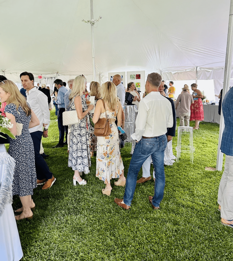 The South Shore Art Festival started with a bang on Thursday night at the Festival Preview Party which raised over $150,000 for the South Shore Art Center. 250 guests enjoyed a first glimpse at showcased art by contemporary and emerging artists who have expanded the creative landscape in Boston and beyond. Five of the showcased artists attended the party and spoke about their work. The South Shore Art Center celebrated this collection and highlighted “the causal link between work showcased and the work SSAC does to launch the next generation of contemporary and emerging artists.”