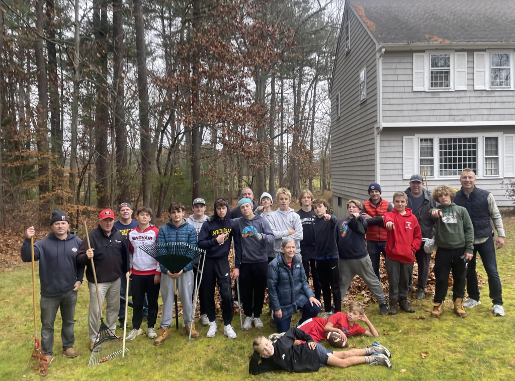 When it was brought to the team’s attention there was a Hingham widow needing a massive yard cleanup, many of the team’s players (the ones that did not have sports conflicts) joined forces to clear the widow’s yard.