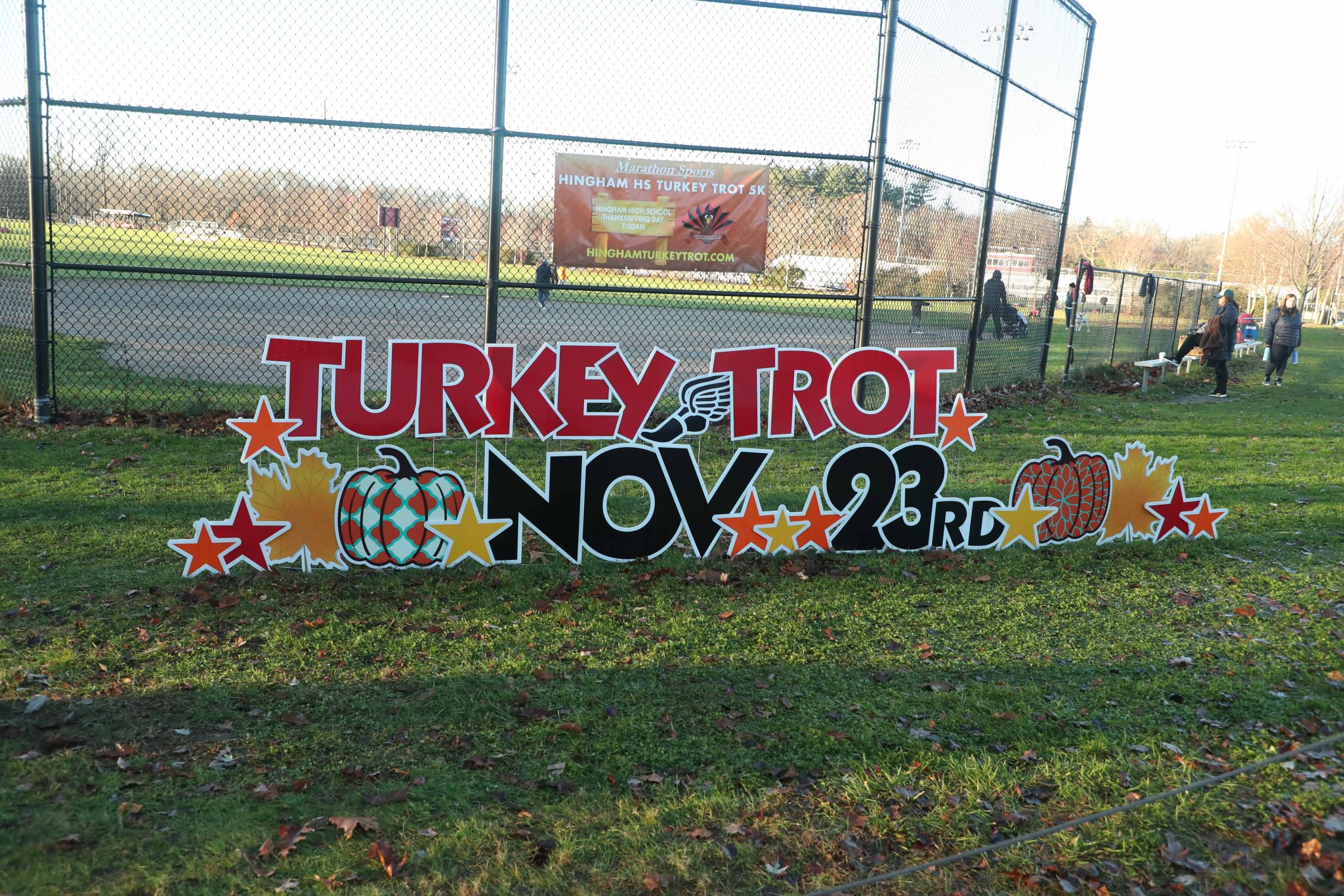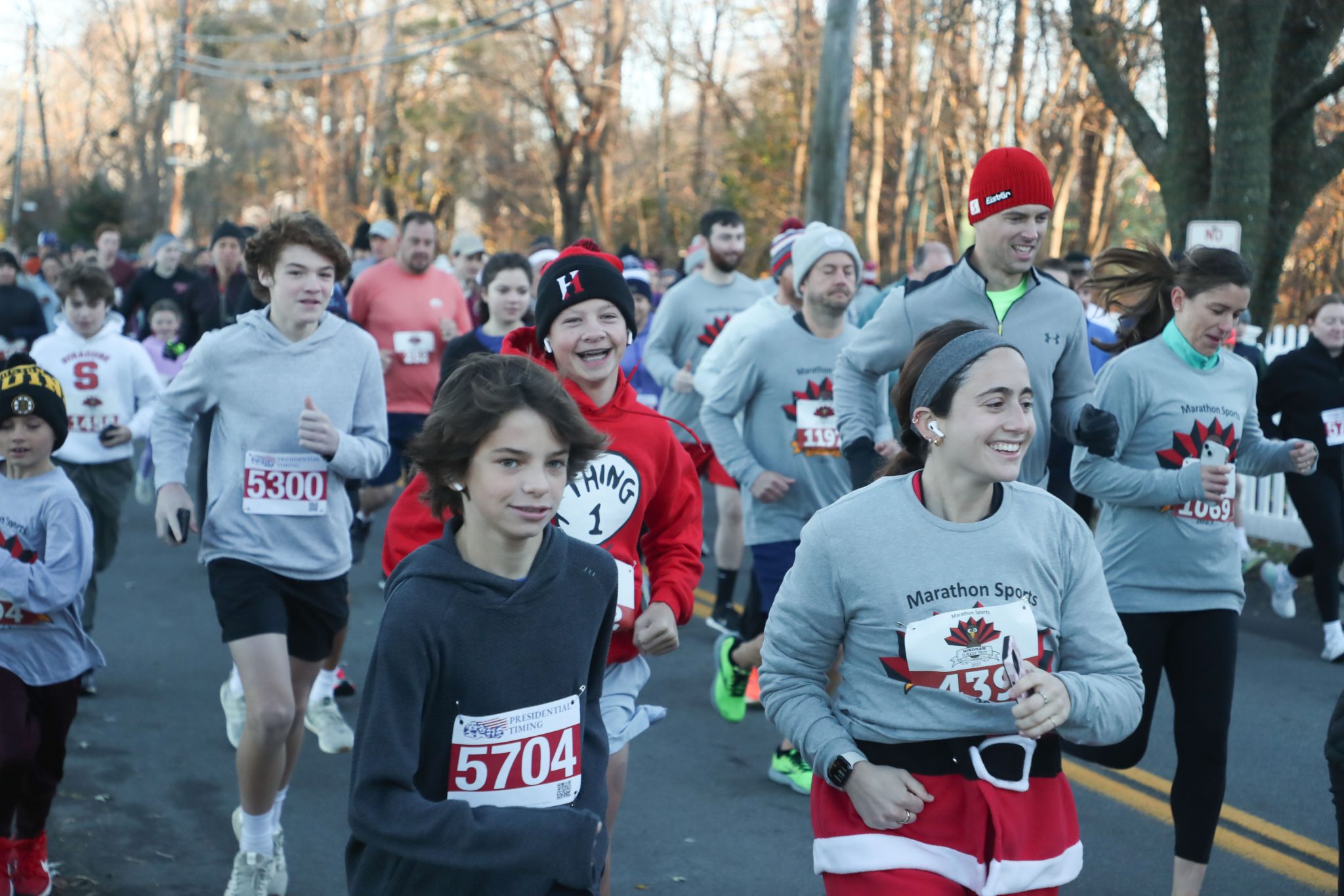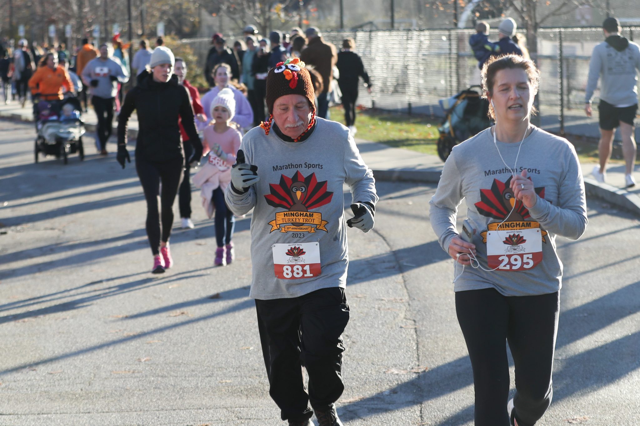 The Turkey Trot is put on by Hingham High School’s cross country team and is sponsored by Marathon Sports.