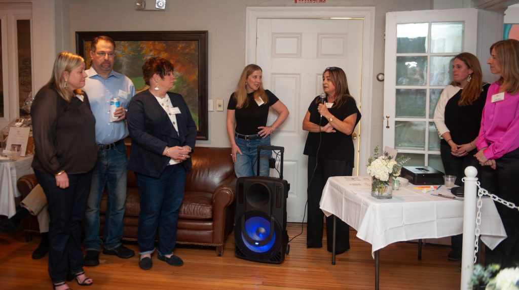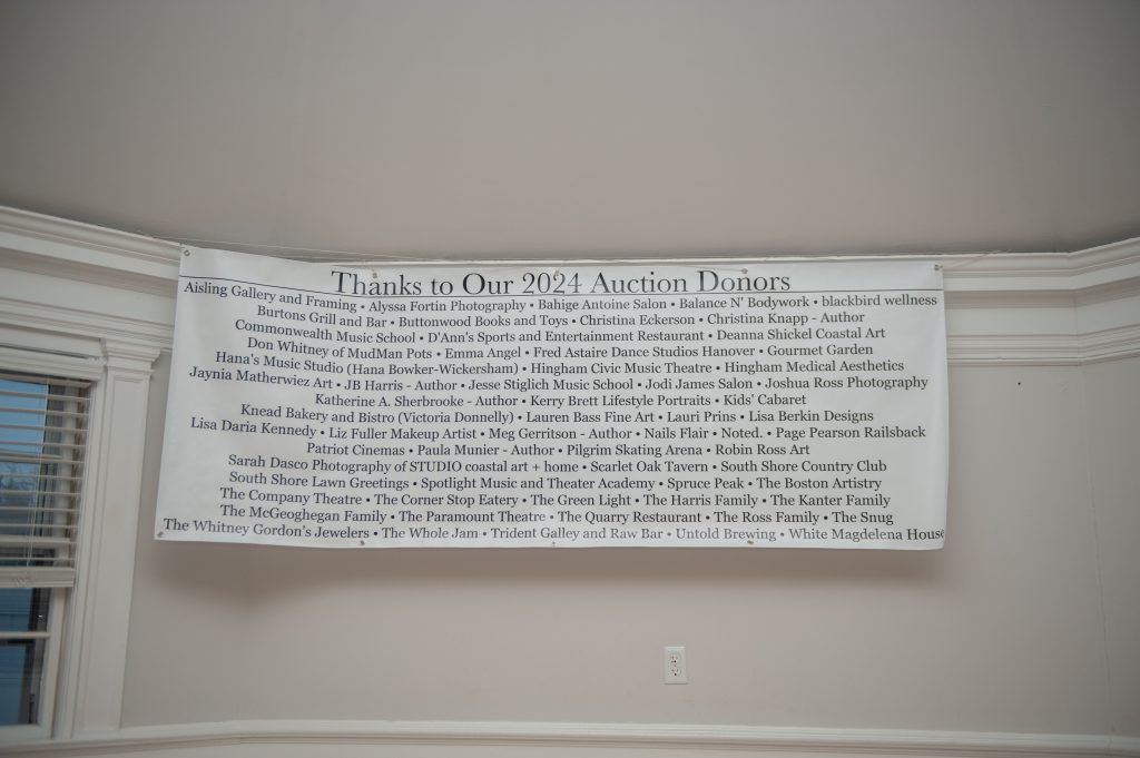 The night’s silent auction was a success again this year and featured artwork from several of our acclaimed local artists including Christina Eckerson, Lisa Daria Kennedy, Jaynia Matherwiez, Page Pearson Railsback, and Robin Ross. Other arts-focused items up for bid included framed gallery prints by local photographers Sarah Dasco and Joshua Ross, custom commissions from Lauri Prins and Emma Angel, and a statement coastal art piece designed specifically for the event by Hingham Artist Deanna Shickel.