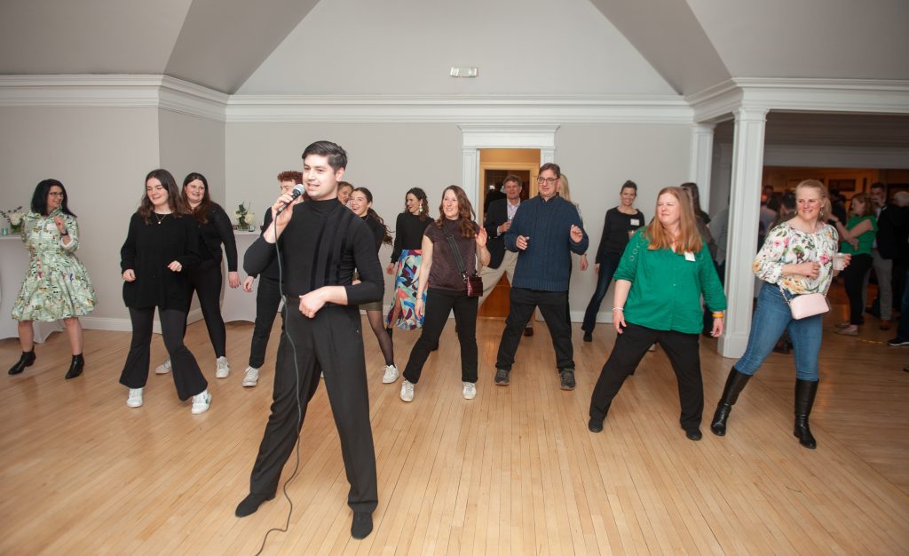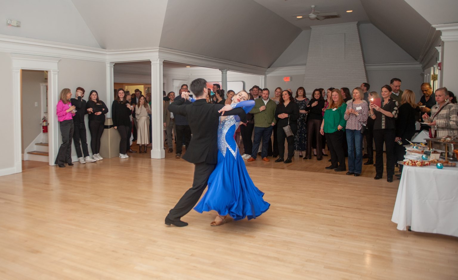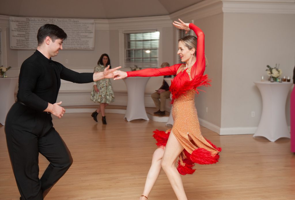 The cocktails and mocktails were flowing as guests noshed on lite bites from Felicia’s Catering and delicious desserts donated by Victoria Donnelly, local baker and owner of the new Knead Bakery and Bistro in Scituate. The photo booth, complete with arts-inspired props, was a hit, as was a return performance by the much-loved Fred Astaire dancers. Some guests even braved the dance floor to learn a line dance from the professional instructors.