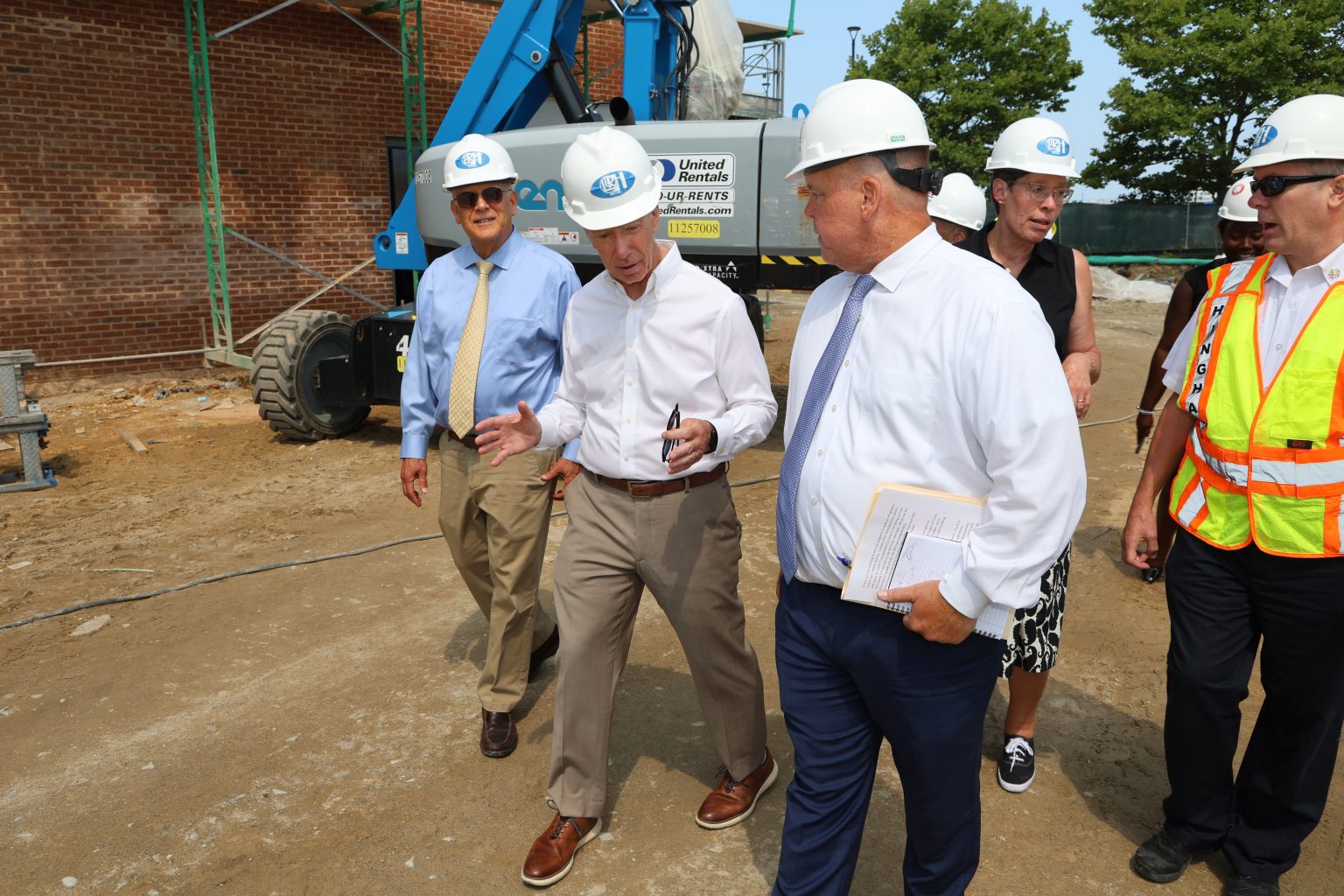 On August 1st, Congressman Stephen F. Lynch (MA-08) toured the new Hingham Public Safety Facility construction site and announced a possible award of up to $1.7M from the Community Project Funding (CPF) federal grant program to put towards the project. The grant money is expected to be included in the Fiscal Year 2025 Federal Budget due on October 1 st and may be applied by the Town to offset unanticipated expenses incurred due to high bids, soil remediation, and ledge work. Congressman Lynch was hosted by Hingham Select Board Chair Joseph Fisher, Town Administrator Thomas Mayo, Fire Chief Steve Murphy, Deputy Police Chief David Petitti, and State Representative Joan Meschino, among others.