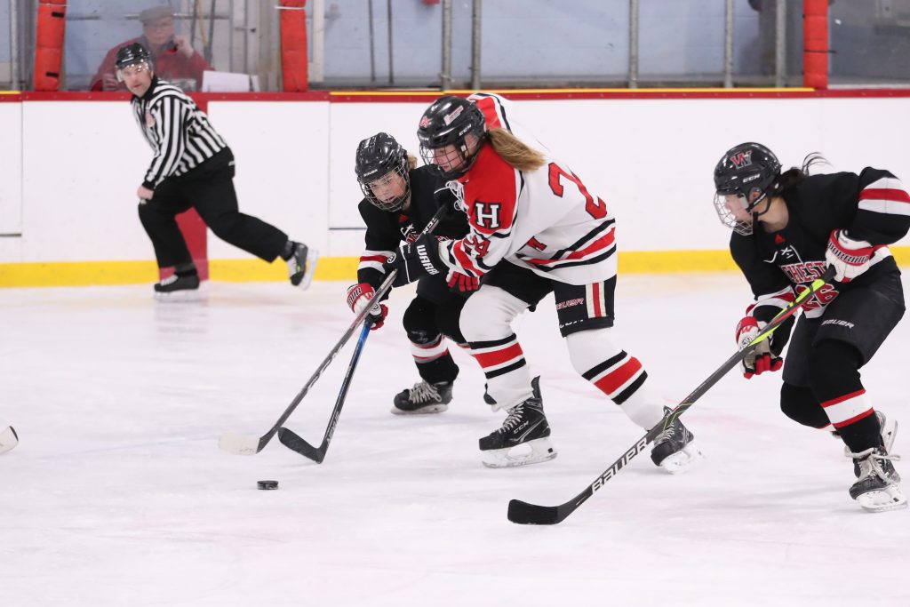 Doherty opened the scoring in the first period with a top corner shot the goalie had no chance on. Her second goal came three minutes later as Hingham was just finishing up a 5-3 power play. Winchester scored in the final minutes of the first cutting the lead down to one. Doherty when top corner again for her third goal 7 minutes into the second. Winchester scored late in the third and pulled their goalie on a power play with 3 minutes left in the game, but Hingham held on with a strong defensive performance and great goaltending by freshman Izzy McGarr.